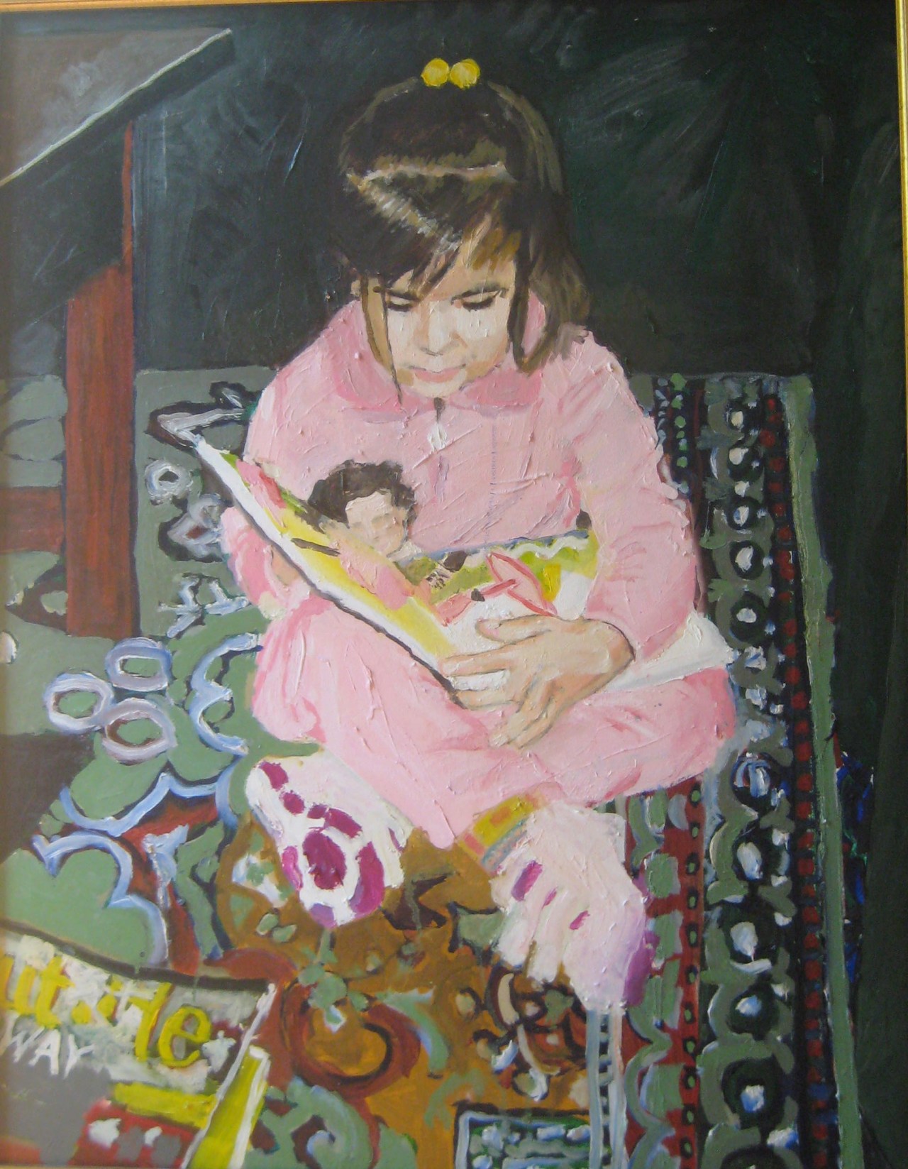 Emily had over 50 baby dolls at this stage of her life and her days were filled with mothering them. She is only 2 or 3 here so she doesn’t notice that the book is upside down. She was soooo sweet.