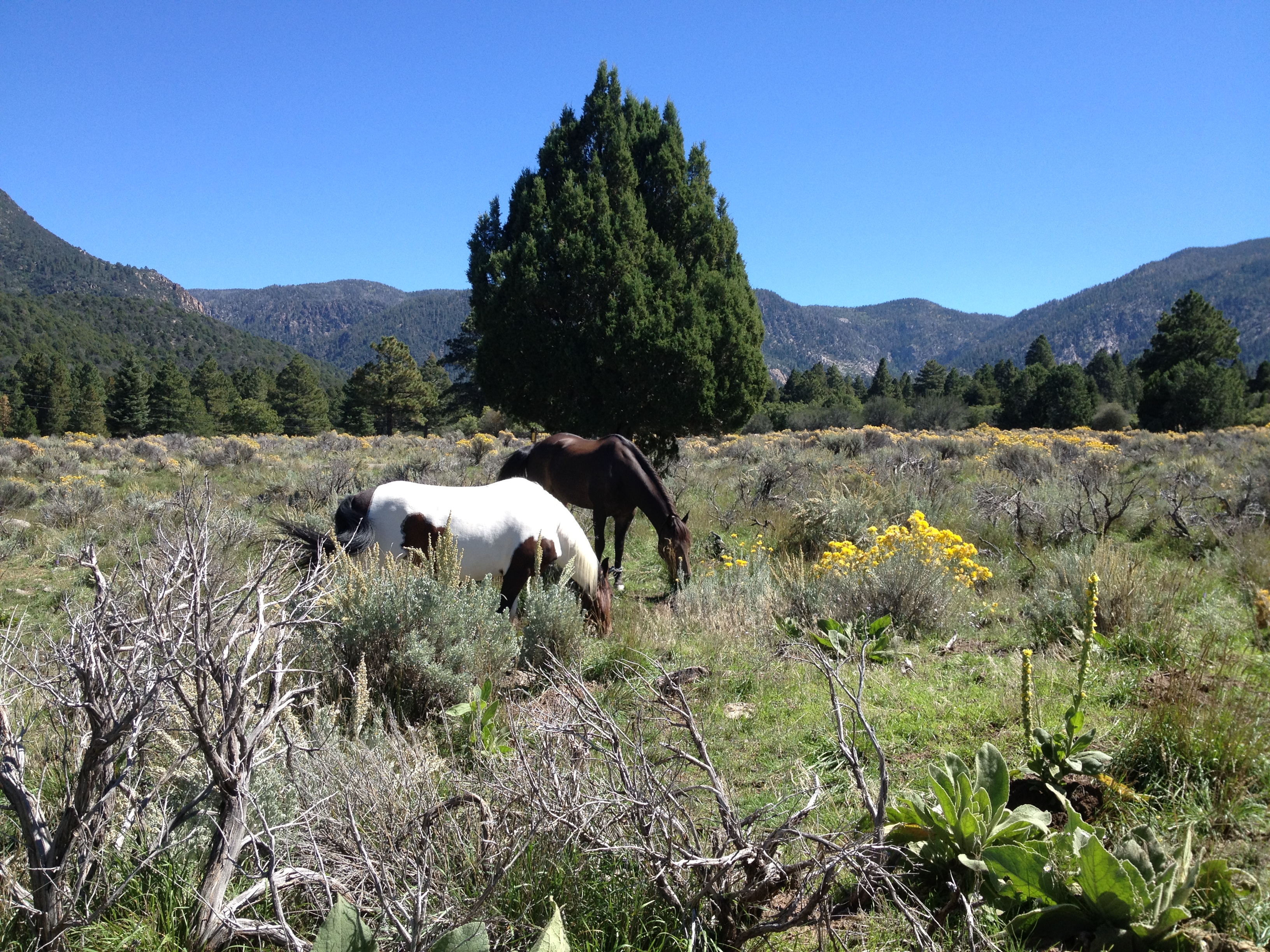 I arrived in Las Vegas at dusk and stayed at Bamberry Stables. Don and Debbie, the owners, let me put my mares in their big arena for the night. They enjoyed the space and rolled and trotted around all night long. I slept comfortably in the trailer with a little AC thanks to my generator. In the morning I ran to the Albertson, got gas then loaded the girls up again. Next stop Pine Valley, UT which is in the south west corner of the state. It’s a tiny little beautiful valley up in the mountains.