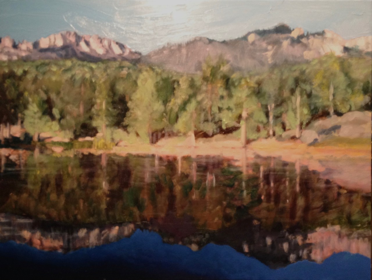 Unfortunately there was only one small corral (rough timber bolted together with the bolts facing inward unfortunately) per campsite and putting one horse in another site nearby made them both too anxious. I ended up with them together and hoped for the best. I spent the next few days experimenting with tying or hobbling Wildflower to keep her from beating up on Dreamy. The first day I ponied Dreamy, the next I rode both separately and ponied again on the third day. Tucker even went out with me one day, which he hasn’t been well enough to do in a long time. It is an incredibly beautiful area, lots of streams to cross, cool temps, roaming cows, pine forests, deer… very few other equestrian campers tho.