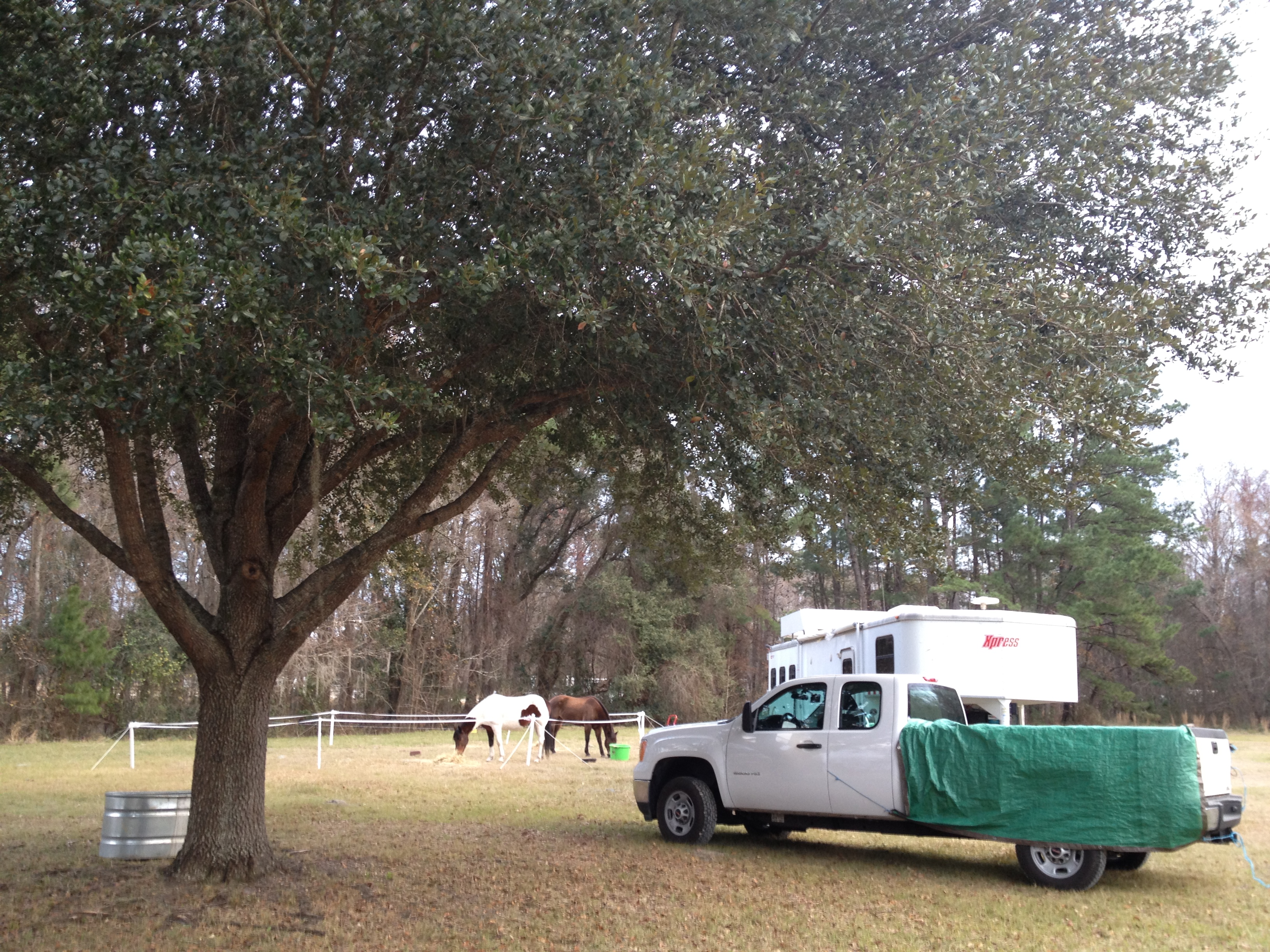 My drive from Mayo to Jupiter took 7-1/2 hours to go 350 miles (MapQuest said 5-1/2 hrs, truckers gps said 6-1/2 hrs). I am always longer. I do quick gas stops and water the horses every 3 hours. I drive a few miles under the speed limits. I stop at all weigh stations and agricultural inspection points (FL seems to have more than most other states so far). I have to pad my drive times accordingly. 350 miles is my max daily mileage, I just can’t do it any longer and I hate loading in the dark and pulling in somewhere in the dark. I’m just an old fart.