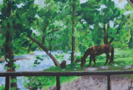 Landscapes with Horses Paintings (acryllic studies 10″x10″)