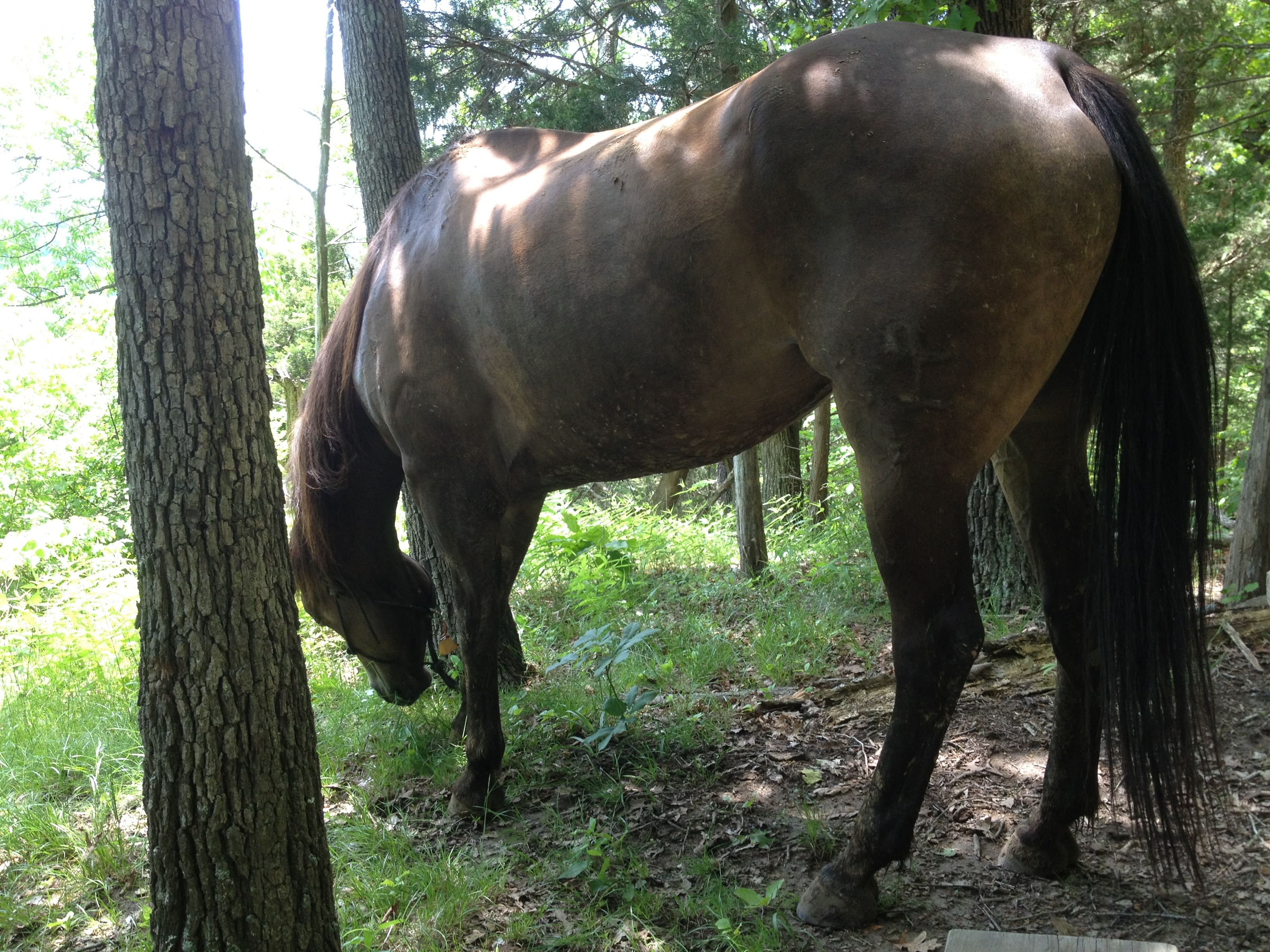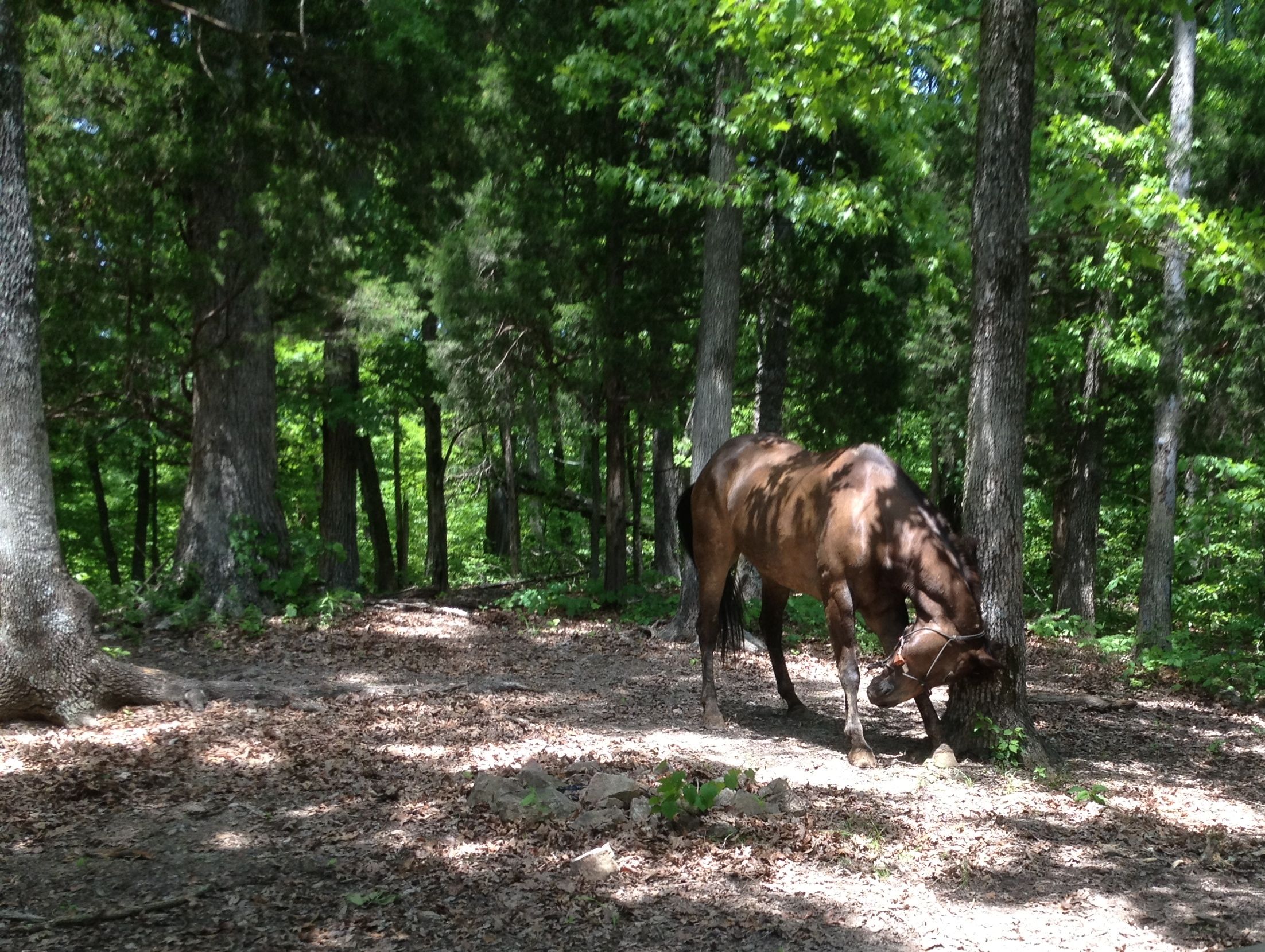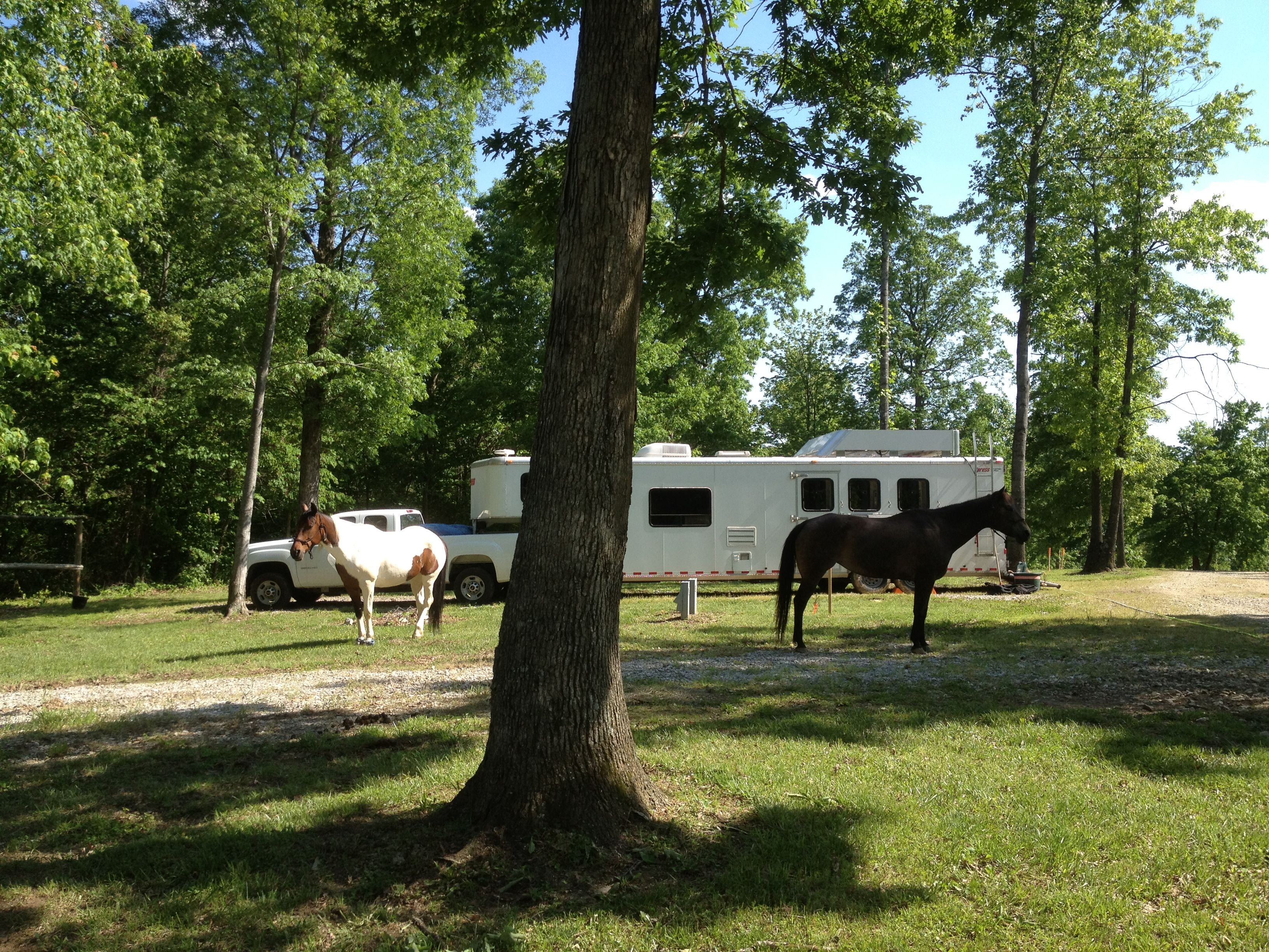 I am all settled in at Elkins Creek Camp. We are having a huge thunder and lightening storm. Mares are getting a good bath, good, I hope the ticks drown, but I think they actually thrive in wet weather. The road getting in here was a little narrow and one huge pothole, actually like the road is caved in. I made 2 wrong turns and had to do 2 U turns, one easy, one not so. But I got here safe and sound. Rick the owner greeted me and told me everything. He let me run a wire across part of the arena so they don’t have to be stuck in a stall. I really appreciate this, I didn’t ask him, he offered it up. They are booked this weekend for Memorial Day. He said they are ranked #4 on the traildirectory.com website and plans on being #1 next year! He also put a bee in my bonnet about being a wrangler in Bryce canyon or the grand canyon. He has done this and can help me. This camp was wiped out by a tornado 3 years ago and he rebuilt it. He has over 100 stalls, shower houses, tack shop, arena, wi-fi and you can get a massage from Jill his wife too! I am definitely doing that.