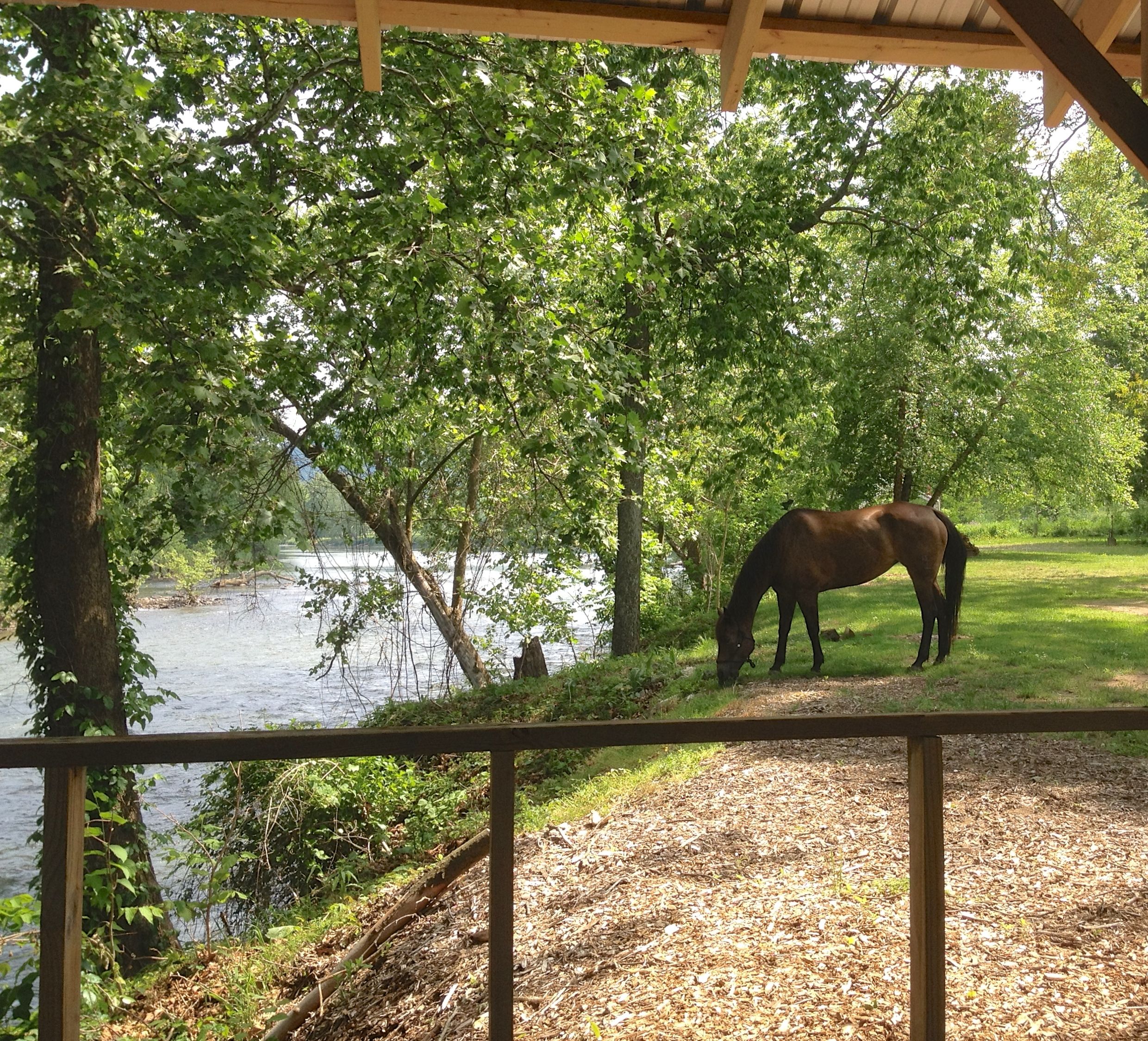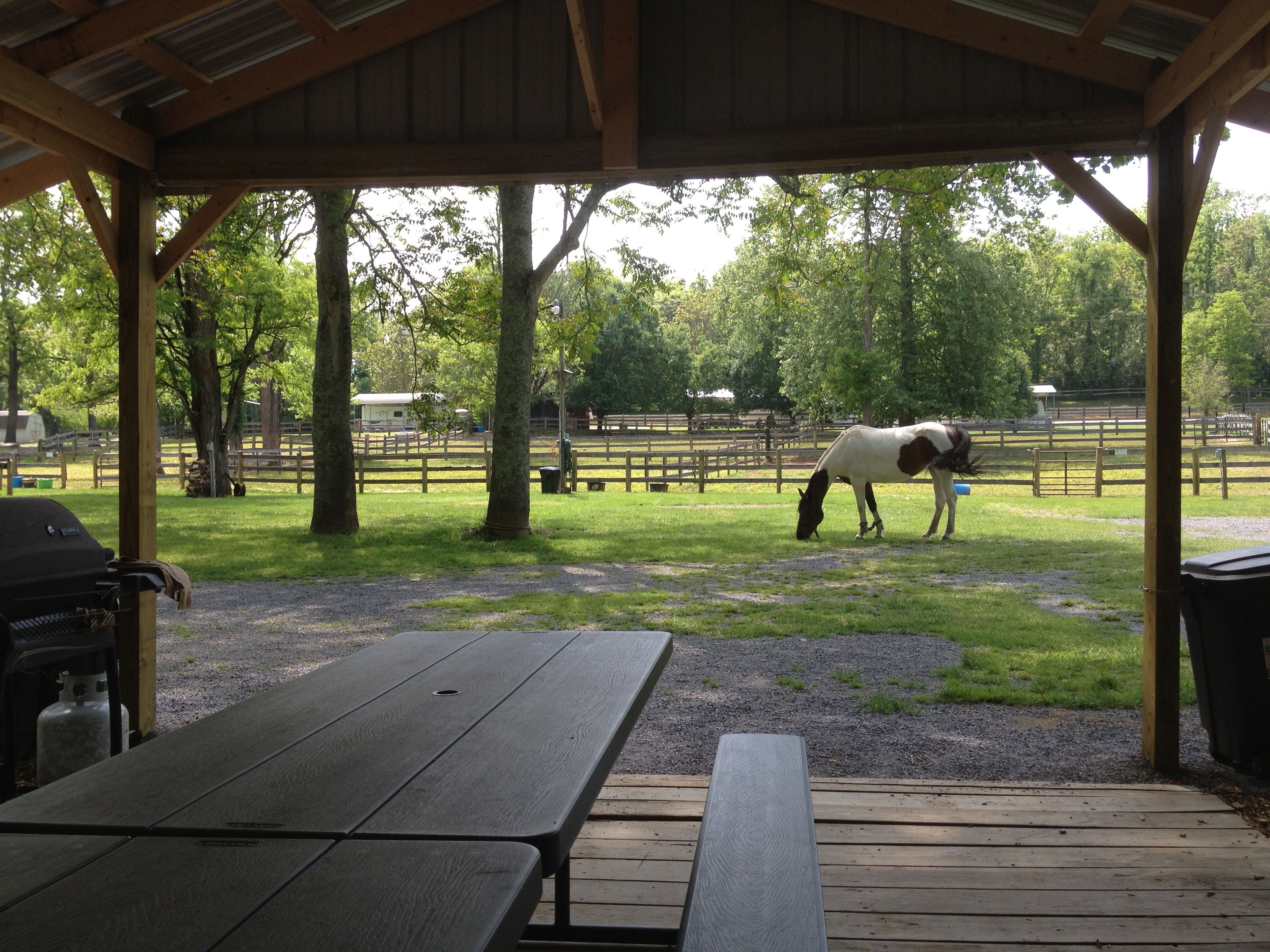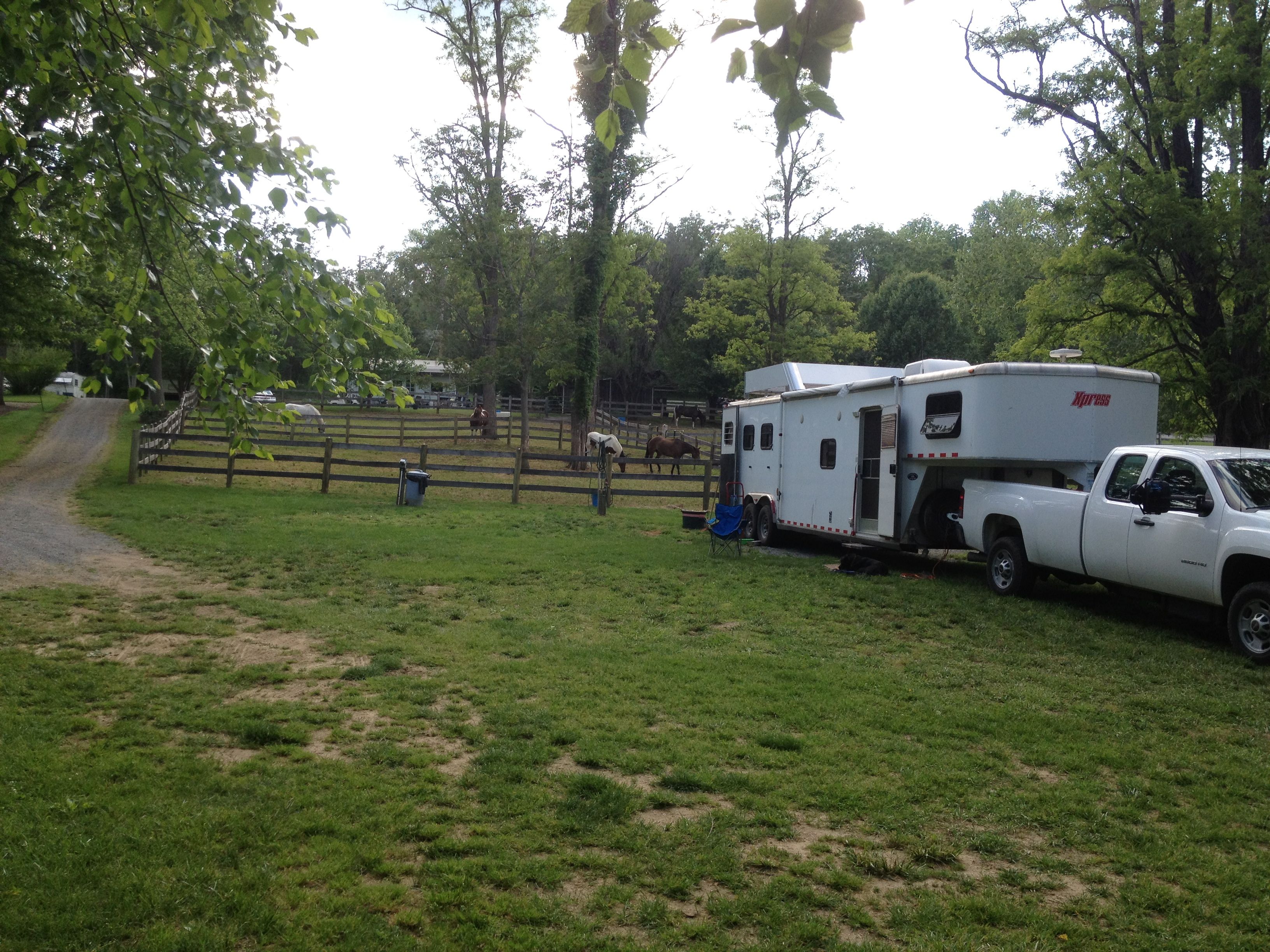 Just when I thought a camp couldn’t get any better, I pulled in here to heaven. Its on a big river, large trees, grass everywhere and each trailer site has a huge wood paddock about 50’ square. This is the most important part of a camp to me. I hate putting them in a small pen or tied. Ron & Penny were off somewhere and Ron’s mom greeted me, found them, warm hugs. Very cool. And Key who I had met in SC also is here with his wife too, he came over and said hi. I am going up to the pavillion for burgers now. Just met 2 riders who came in and one came over, her name is Jo and she is visiting from Alaska. Her mom lives in Raleigh, where her 15 year old son is staying and she is here with a girlfriend from NJ. I’ve been here one hour and have met up with 6 people already. This is what I am talking about that I would miss when I settle down.