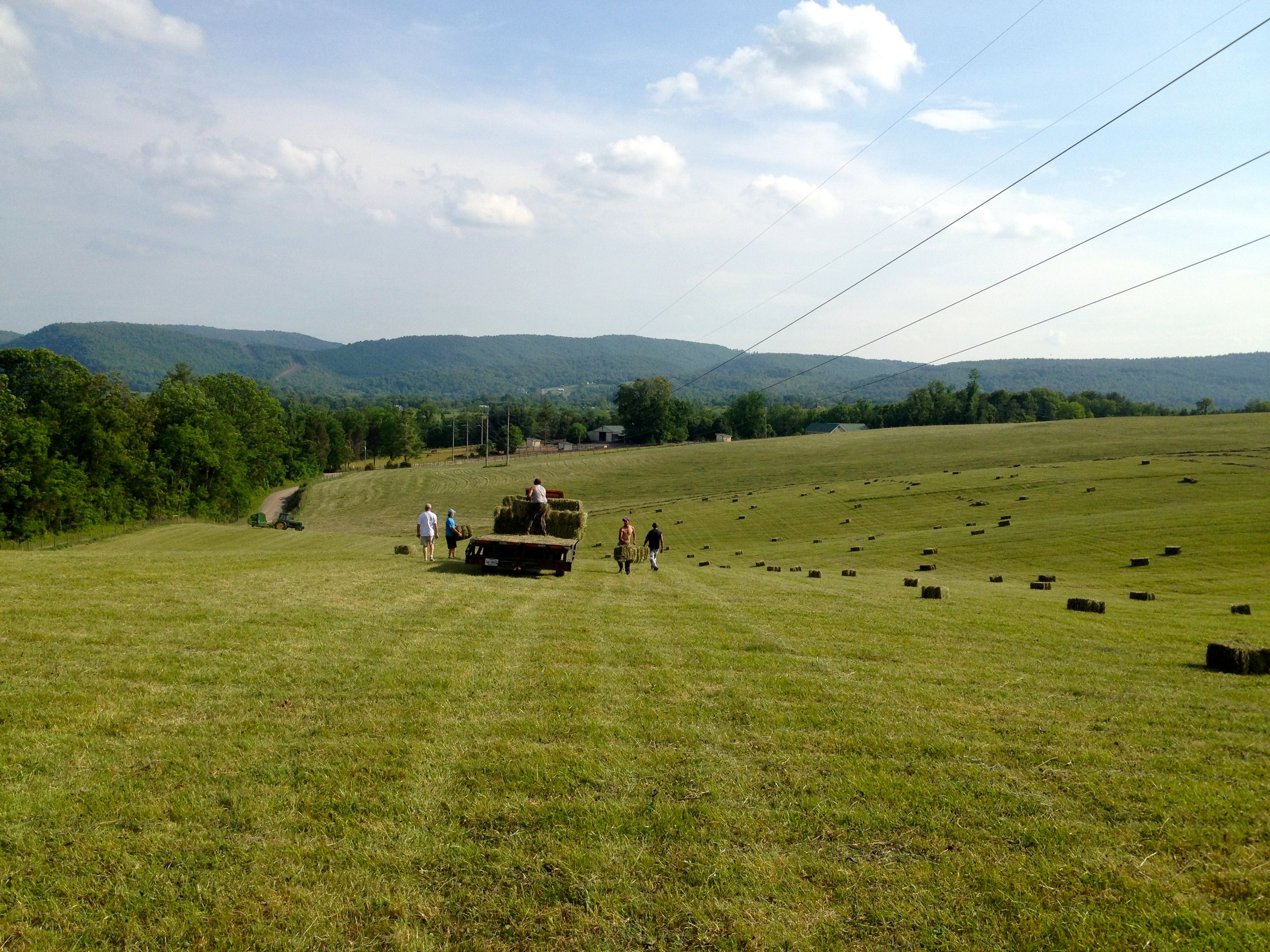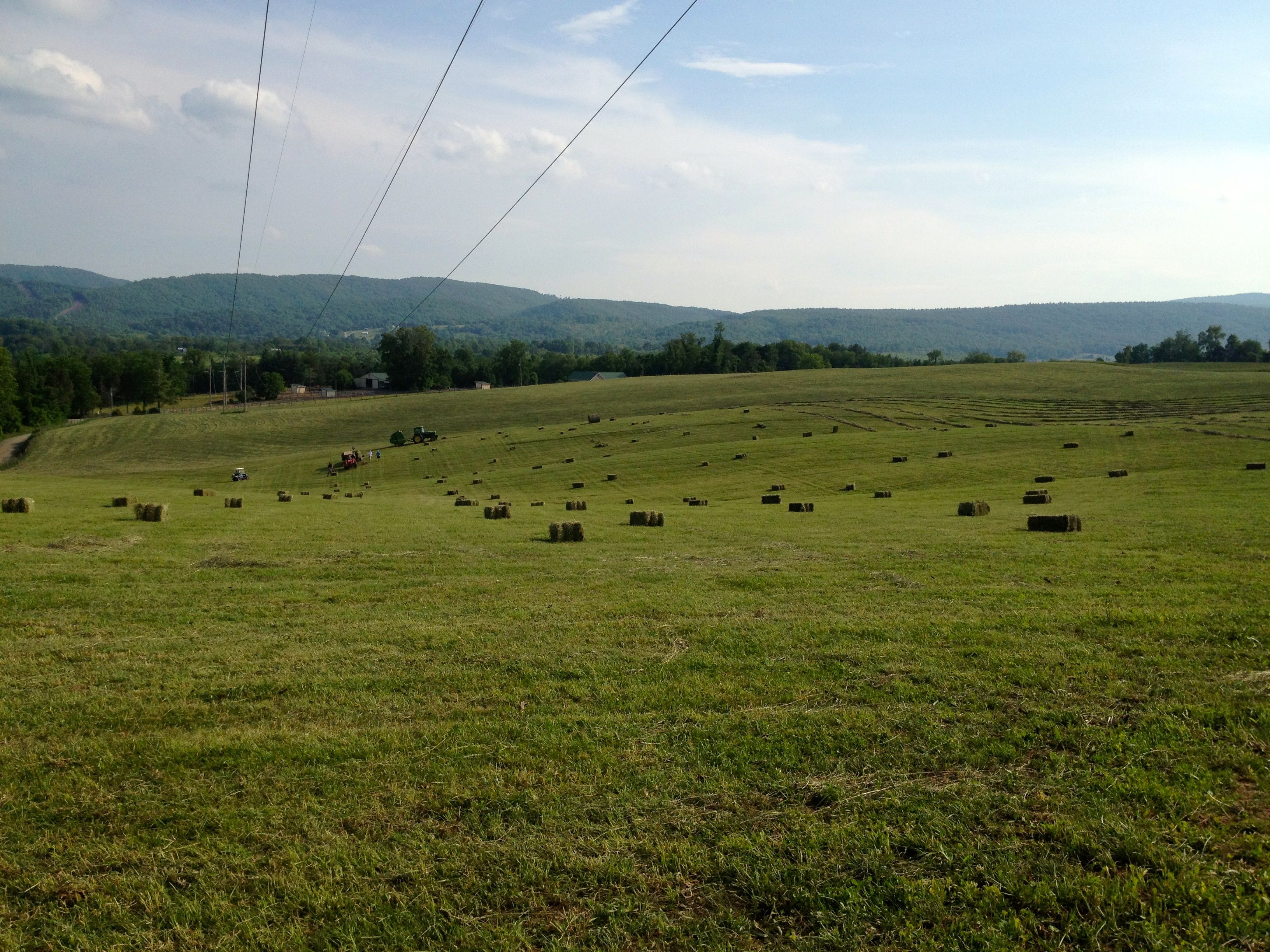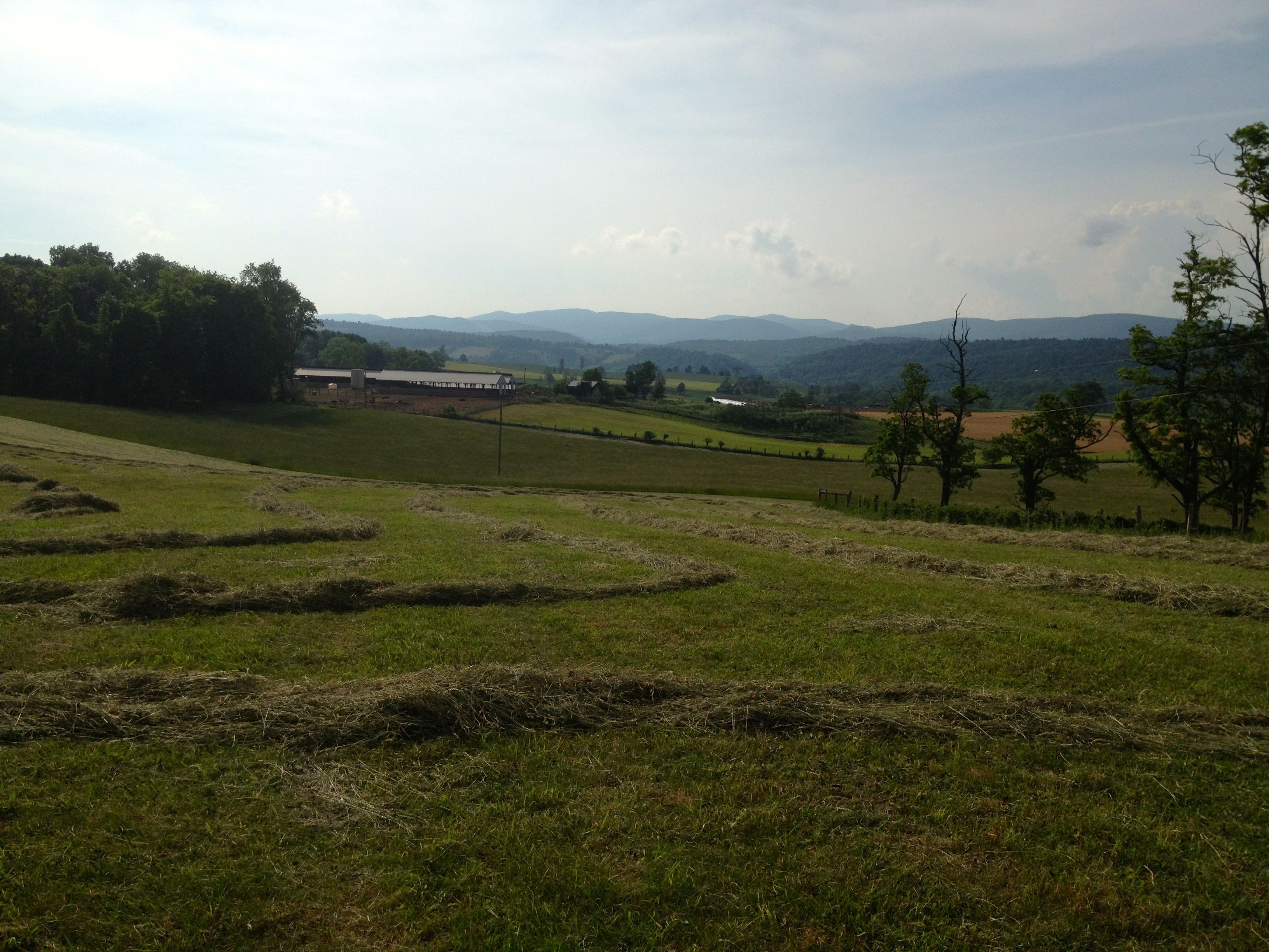 I went up to Penny’s barn to pick up my 6 bales for fresh grass hay. The big stack had fallen down. They have to restack the whole thing now. I had noted that it was leaning when they were stacking it yesterday, but as Penny says, a bunch of guys aint gonna listen to a woman. Inga Acres (I love her name, she hates it), her “old man” (he’s in his 20‘s and has fathered 4 kids and lost his drivers license due to not paying child support) and Glen (Ron’s alcoholic employee) worked on fixing the stack while Penny and I talked a while. Earlier she had said she was going to go ride, the guys threw the hay up in a mish mosh and left the barn. But she didn’t go ride and called them back to do it right. I really like her, she is such a capable woman. She and Ron ran a trip a couple weeks ago for a small group to do a 100 mile ride point to point (18-26/day). She’d haul all the rider’s stuff, set up camp and cook all the meals along their route. They ended up here at their camp. Its the VA Highlands trail I think. What a cool trip, but too many miles for me. We talked a bit about MS, dogs (long trail riding with dogs is hard on their hips, I didn’t know this), barefoot vs shoes and a bunch of other stuff. She doesn’t have kids, she would of been a great mother.