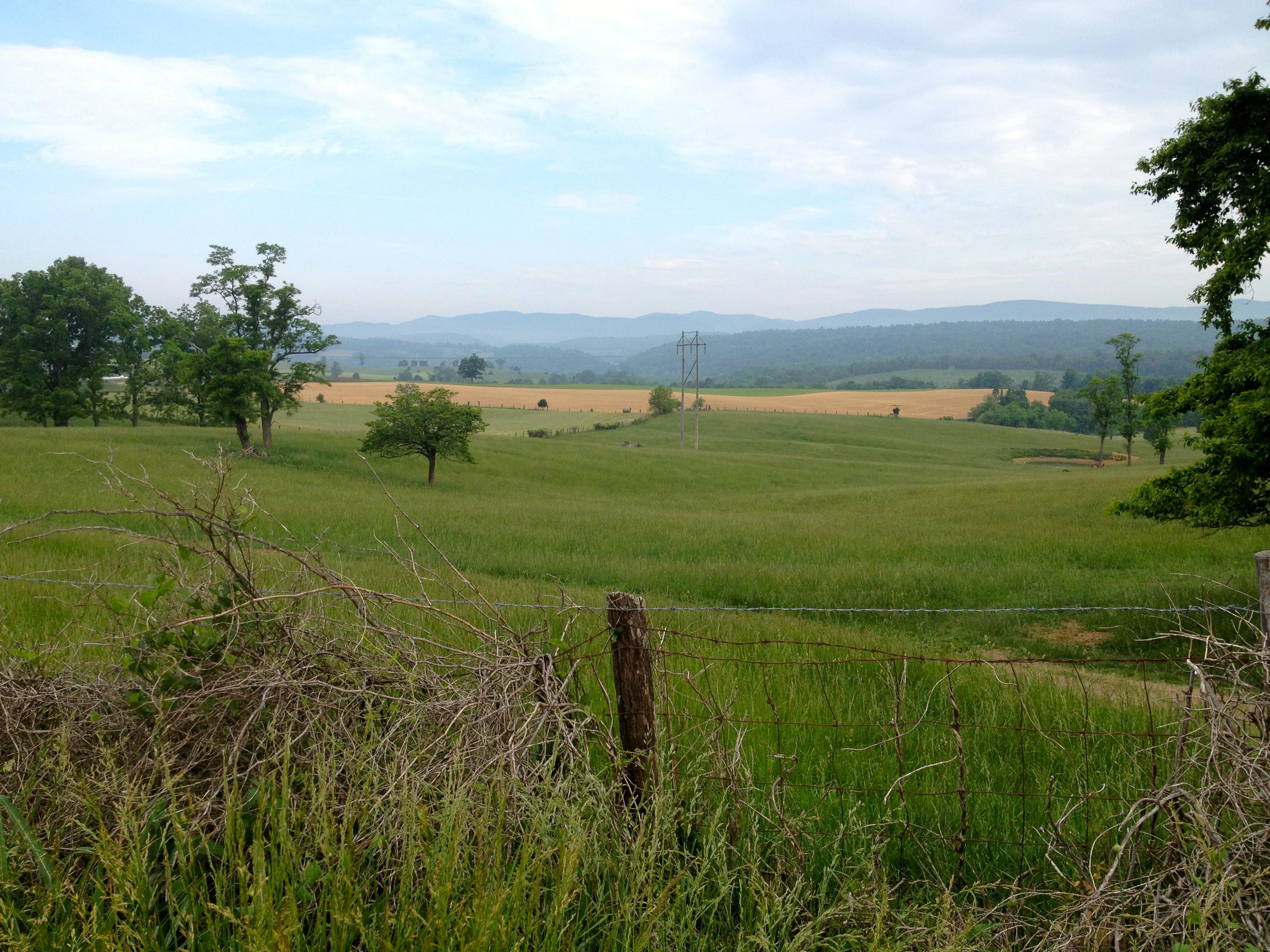 I was hanging out by the river in the covered deck they built there, and Penny came by on one of her souped up golf carts with her 2 dogs, Socks and Bullet. I got in another one (they have a bunch of them) and Tommy got his first golf cart ride. He has been wanting one for a long time. We went to a secluded idilic spot on Cripple Creek to let them play in the water. And they did have fun! Tommy loved running along side the cart thru the pasture getting there. I wish I had my camera with me, it was such a cool thing to watch. The grass was over his head and he was running full out along side me. He looked so happy. She took us to a couple of vistas that were breathtaking. You can see the rolling hills covered in thick woods interspersed with the patchwork quilt of farm fields, dotted with farm houses, and the new river and the huge tressle that crosses it. And the cows and their babies. She said she doesn’t see how anyone could ever live in a place like NYC and not be able to see this every day, to walk in the dirt. I told her I had lived in NYC for 10 years. I guess if you never experience this, you never miss it. This is the kind of place I want to live in. The view was so pristine and peaceful. I would never tire of looking at it, it was so interesting too. I could see painting it over and over with different light and different seasons. Letting the peace roll over me.