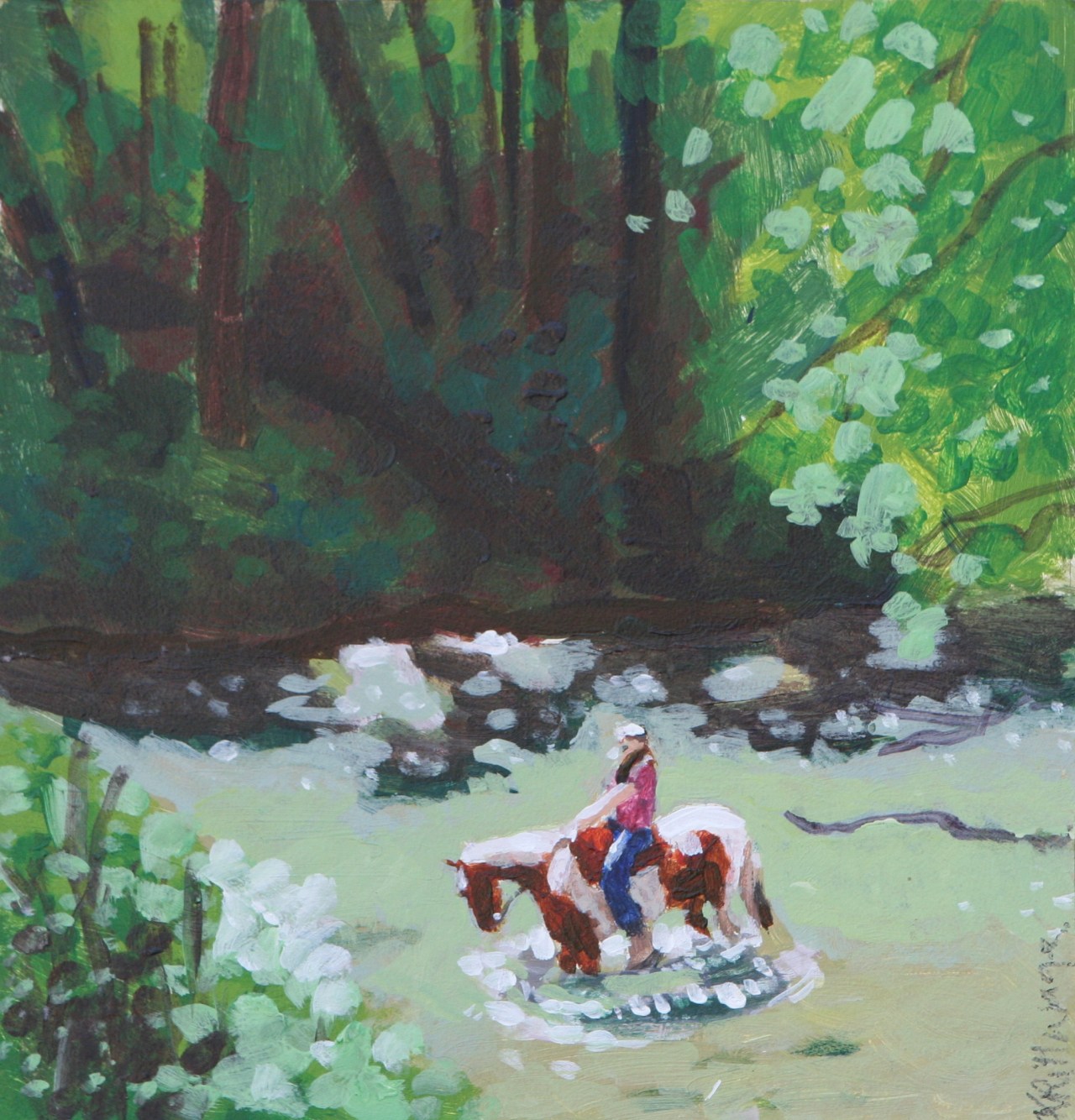There is nothing more beautiful than watching one of her horses gallop off out of sight over the hill. Her pastures are not grassy (she said the soil is bad) but there are enormous. I’ll never forget the day I let Dreamy loose with Riatta Rider’s herd on 10 acres and she galloped off like that. I did a painting of it a long time ago but it doesn’t capture it well. I was so moved by the moment that I left her there for a month to enjoy the freedom. When I came back to get my daughter & her, Dreamy was missing one shoe, one was held on by one nail and askew, she was covered with kick marks and had pink eye. She never looked happier. It was one of the rare times that I could not load her to go home. Some day I will have a huge grass pasture to let them be free. I tell them this all the time. It is my dream, and somehow I will make it happen.