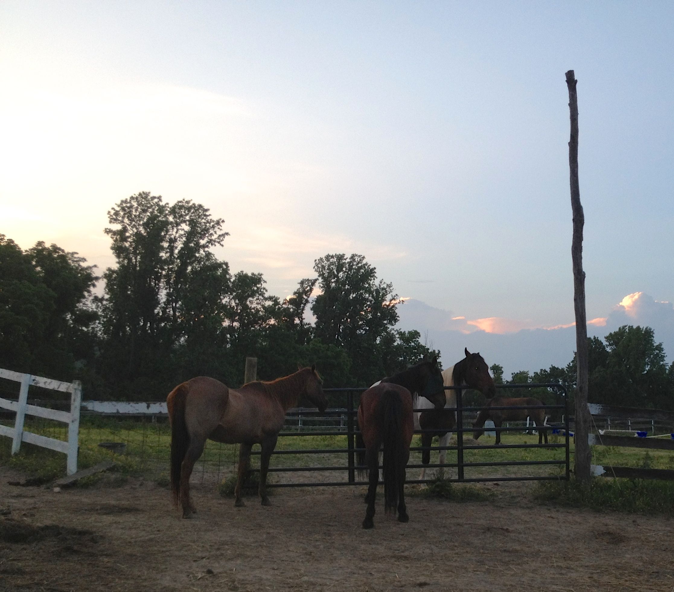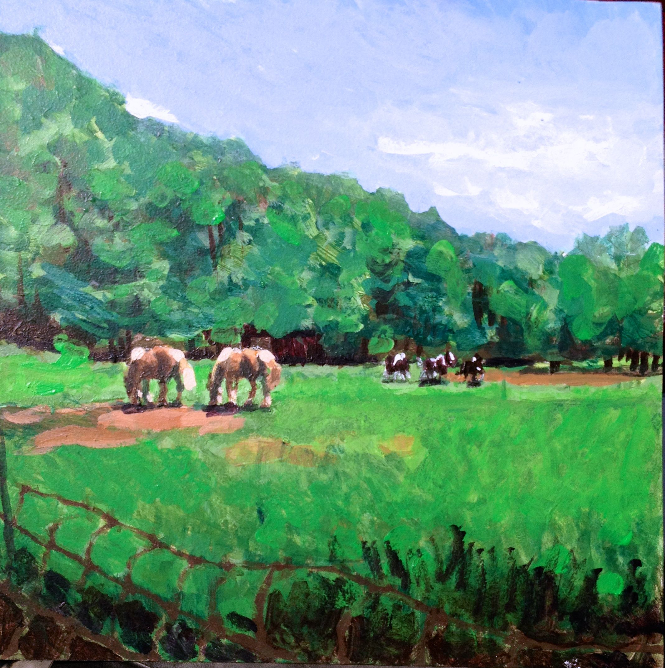 Well I took Tommy for an hour walk and spent the rest of the day basically comatose. It was 85 degrees which didn’t help me gather up any energy. I napped, then painted, chatted with Judy a few times, took a lot of photos of the horses here, and dragged myself around with the enthusiasm of a wet washrag. What’s the matter with me? Its 9pm and I am going to bed, its just getting dark, must be summer time.