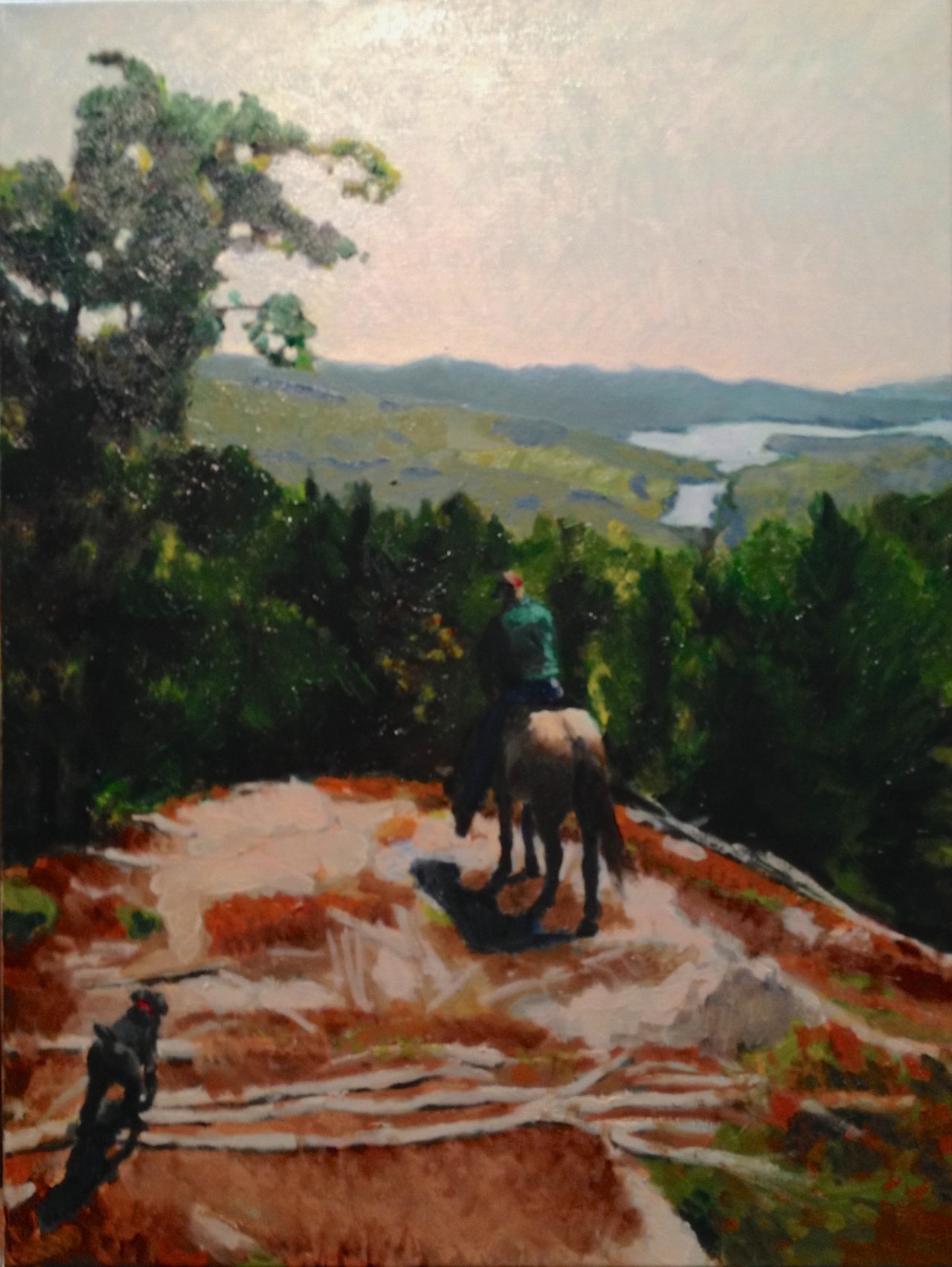I woke today to a picture perfect day. I love being at the top of the mountain, I feel like I am in the sky. I don’t know what the altitude is, probably not so high, but we are above everything else around here. Its very breezy, light puffy clouds moving swiftly. I walked Tommy around (encountering Dave’s loose horse along the dirt road), deep cleaned the trailer, even the horse area (it has gotten filthy in the last 11 months), set up to paint outside, Liza set off for laundry and groceries. The horses have been roaming around camp with cowbells on (which they have now lost) and lead ropes dangling (this works better than hobbles and doesn’t wear off their fur). I’ve dabbled at trying to recollect the last week and write it down but I’ve probably missed a bunch of stuff. I’m just relaxing enjoying life today, God is Good.