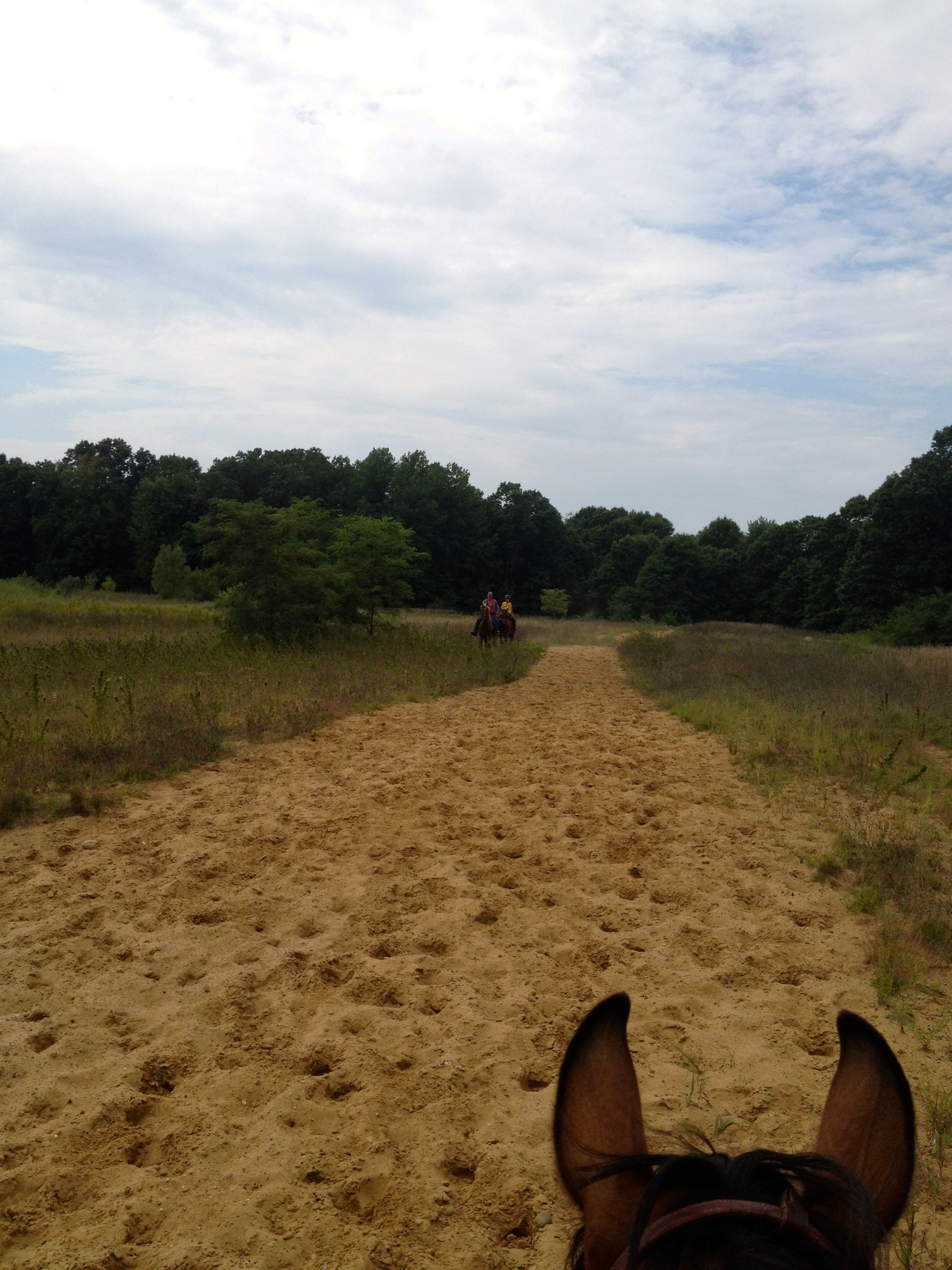 I went out for a ride on Wildflower with Karen (from the hunt club) and Lynn. Both riding Sherrie’s horses. I booted all 4 feet. Most of the footing was sand but there were some seriously rocky areas, but not sharp pointy rocks. I didn’t have enough time to rasp down her feet so they didn’t look like they would stay on, but they did. I have noticed lately that WF has some flare on her front toes at the ground now, less than 1/2 inch high. Not sure what that’s from, it could still be from the alfalfa I fed from Idaho to Kentucky which was last October. I thought it was all grown out but apparently not. The hoof wall above it looks much tighter and at a better angle. We passed quite a few other riders from the other camps. It is a holiday weekend after all. I don’t know how long we were out, I was just enjoying the freedom of not having to worry about getting lost. Wildflower behaved very well, and got thoroughly sweaty. She was still filthy from the PA tantrum so I sponged off most of the dirt and sweat and she looks her pretty self again.