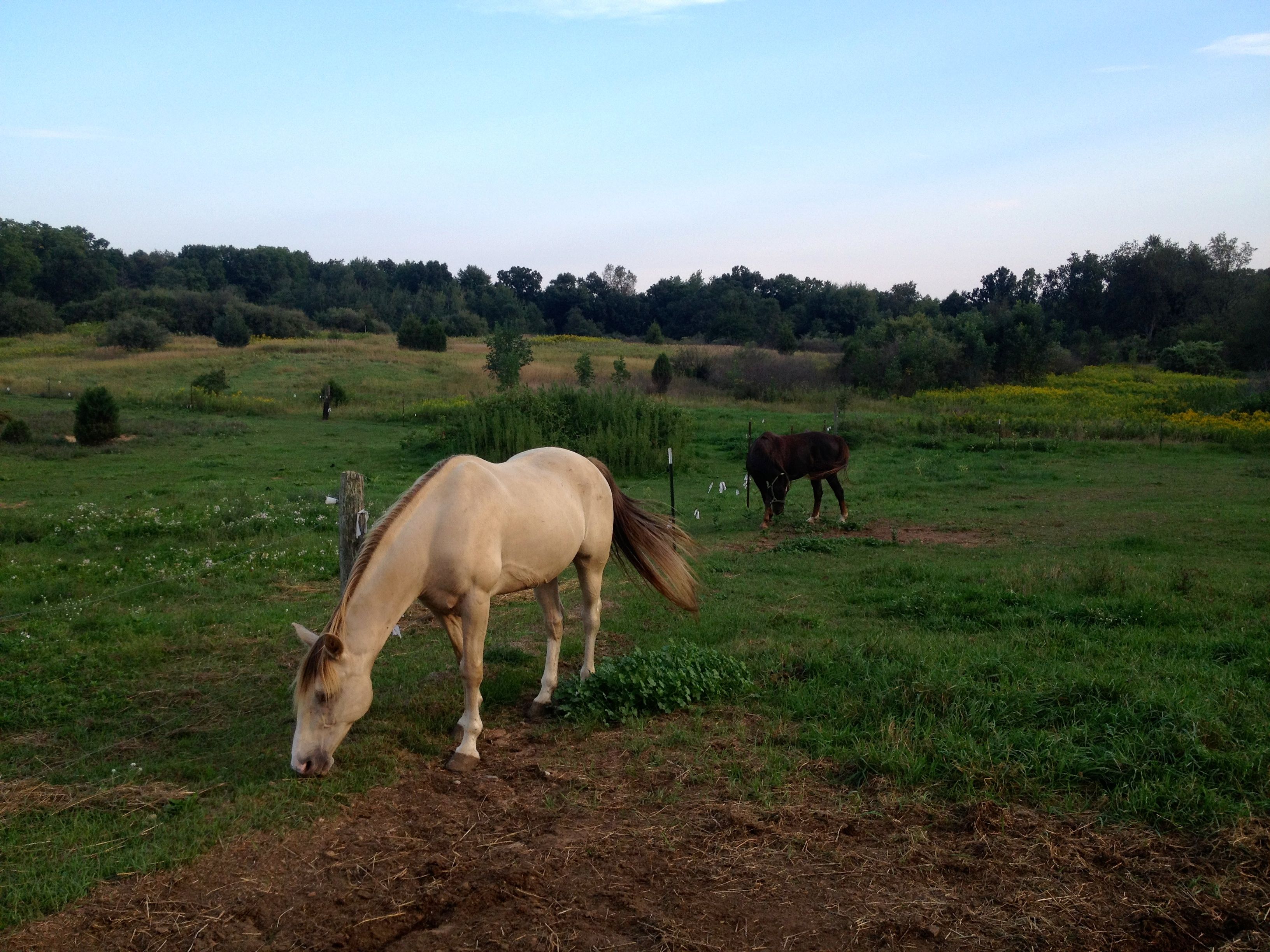 They don’t have any horses here any more, sold them all so they could travel. The corn around the paddocks is very high. The paddocks have thick grass and the mares are very content. They have a nice big farm house and barns as far as I can tell. It must of been a beautiful place to grow up. Nice midwestern country environment. We should of never moved to LA.
