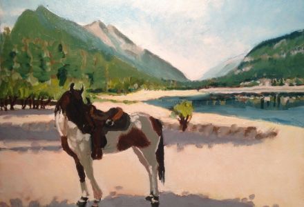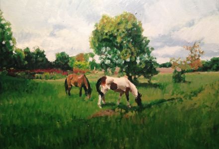 Landscapes with Horses Paintings (acryllic studies 10″x10″)