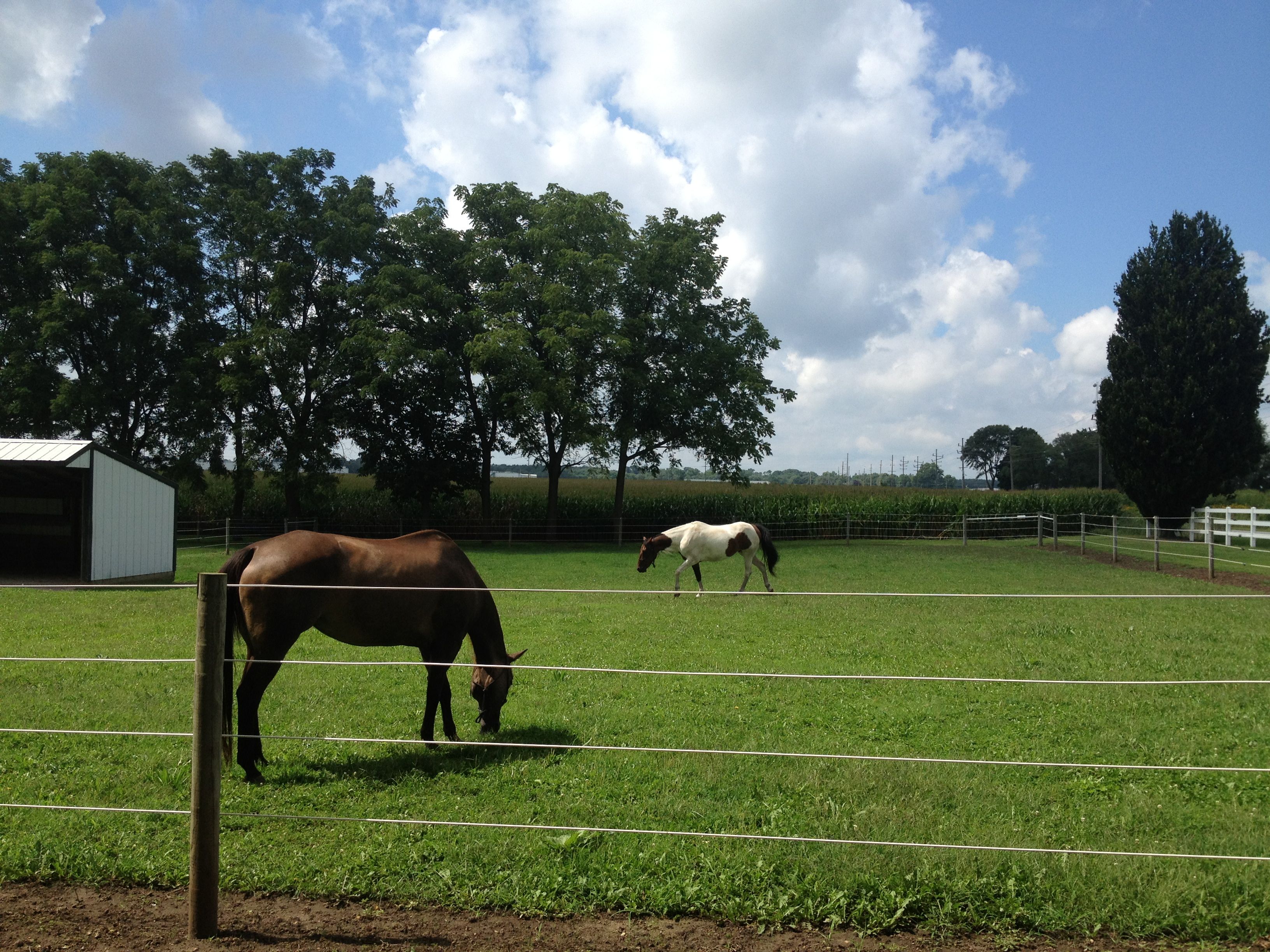 I gave the mares 2 flakes of hay and what was left in their nets from the trailer. They occasionally nibble at it, preferring the grass. The temp has gone down, I had a burger and corn on the cob. I’m going to go to bed soon…early, so I can get on the road by 8. I decided to add 50 miles to stay on interstates that will avoid Chicago and O’hare Airport. I used to live in that area, the traffic is always awful and it will be the last day of a holiday weekend. I overnight tomorrow near Madison, WI. It will be about 4-5 hours hauling I think. I need fuel, a propane tank, bread, diet coke and oreos.