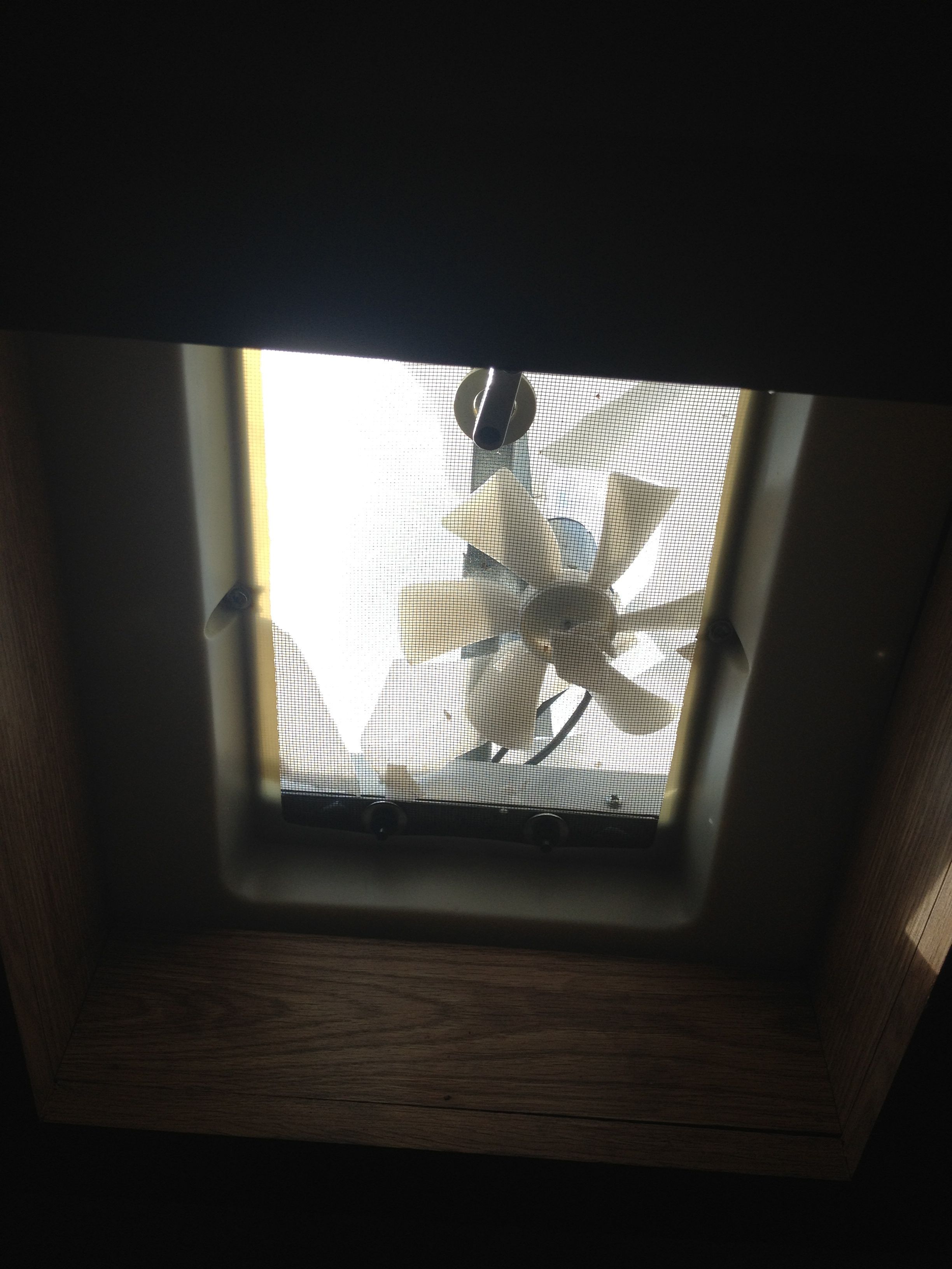 I realized that I had left the ceiling fan vent open while hauling. Its cracked to pieces and I was told they were expecting a storm here, so I took a plastic box top up and ducted taped it there. Its not going to hold hauling tomorrow. I will need to find a rv repair place to fix this, it will be a big pain in the butt.