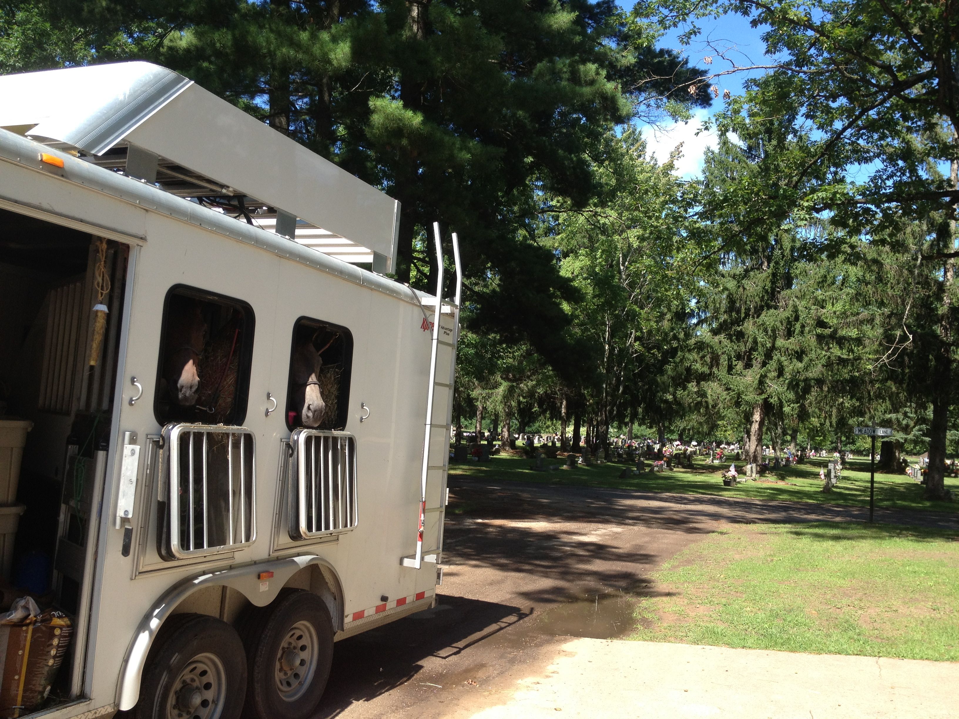 As I entered the cemetery, I realized my hay rack was going to take off the entrance arches so I backed up. Dana (the woman there I had been speaking with) appeared in a truck and showed me how to go in another way. I parked the rig by the chapel. She said I could let the horses off if I wanted to. I said thanks but no (I could just picture them tearing up the grass, seriously?). She took me over to my mom’s headstone where a small hole had been dug. I placed mom’s wooden box of ashes in the hole and she covered it with dirt and grass. My grandmother lays next to her. Another stone is on grandma’s other side for my aunt who is still alive. I gave her the papers and check and thanked her. I took a few photos and tried to take in everything around me to remember it. I watered the horses and walked Tommy. I then returned to the grave and said good bye, that I was sorry she suffered, that she had been lonely that I had failed to help her these past few years, that I wasn’t the daughter she deserved, that I hope she is enjoying heaven, that I am sorry, so sorry. And then of course the tears came. The chapel bells were chiming some songs, the sun was bright with big puffy white clouds in the sky. It was very beautiful and peaceful there. Then I dumped the mare’s water buckets and got in the truck. As I was about to pull out, my phone rang (it never rings anymore). It was my dad’s lawyer who needed some info since dad is tweaking his will to avoid probate. I guess Dad is getting ready to die, why is he doing this now? I don’t know what to say, I know I will get thru this with God’s help. But I can’t believe it is really happening. The lawyer was very nice. I told him no, I didn’t live in CA any more and that my middle name is not Ann, it’s Burns. He also wanted my social and my birthdate. He asked if I was going to visit soon and that I should meet with him if I did.
