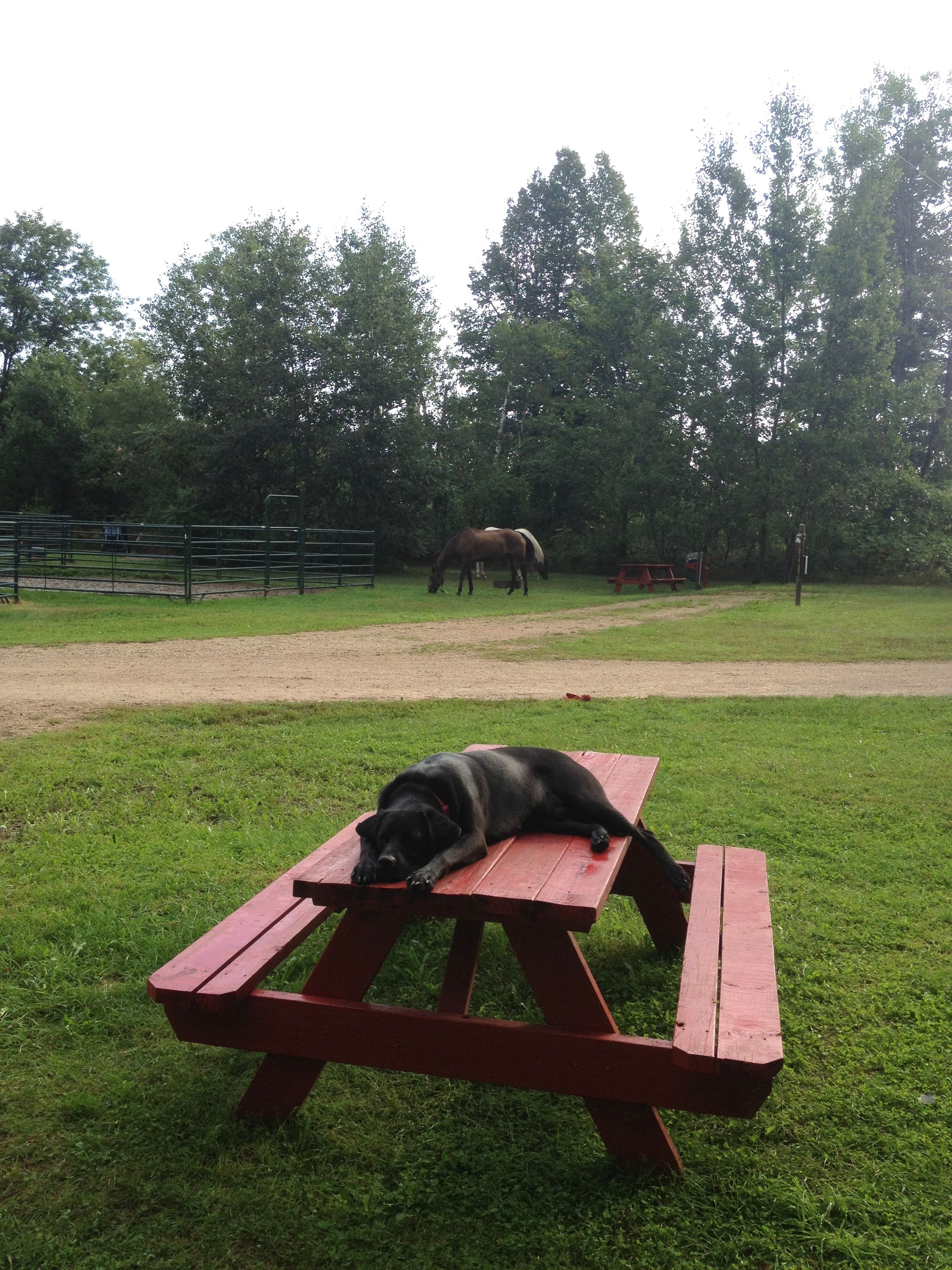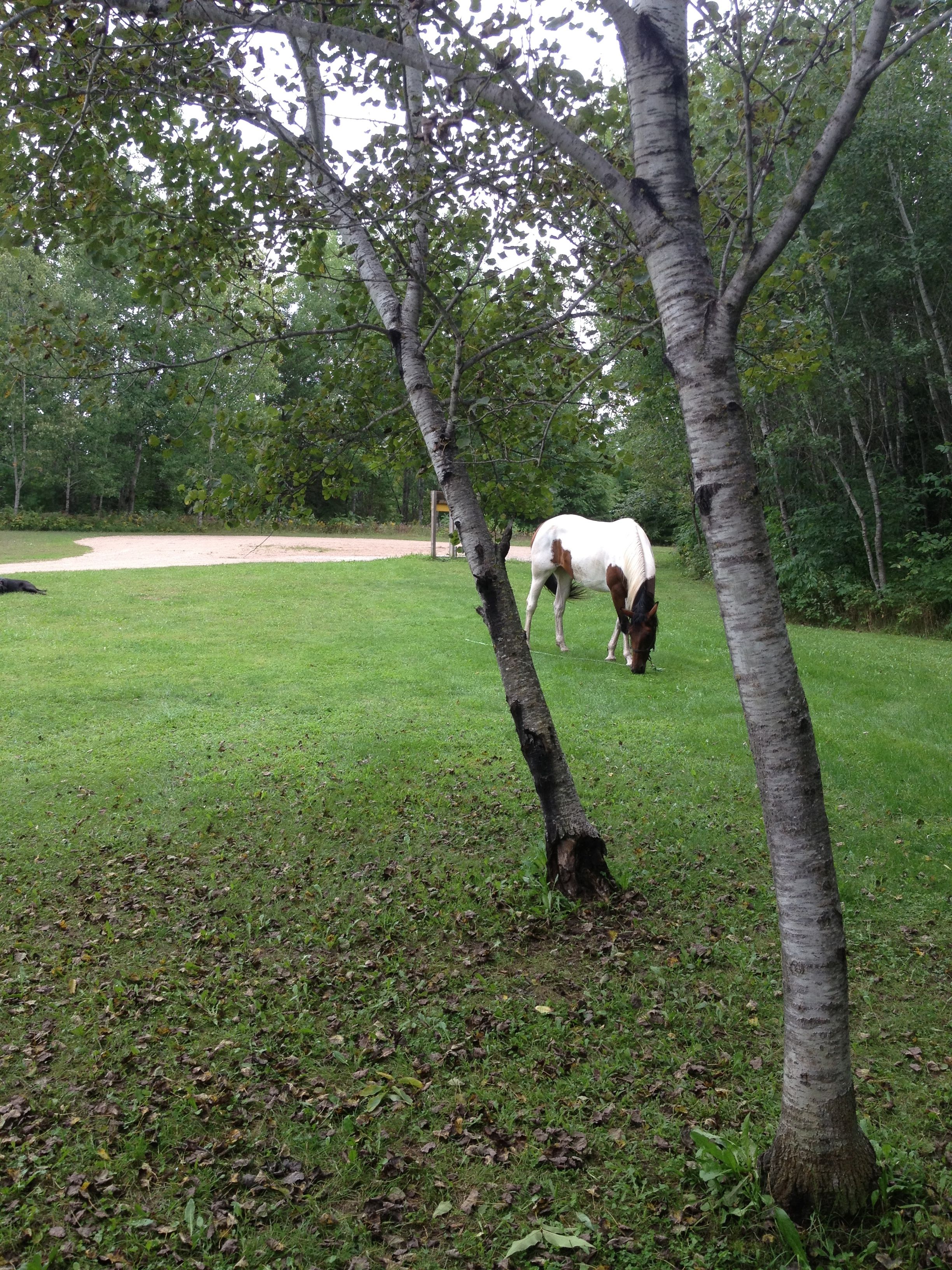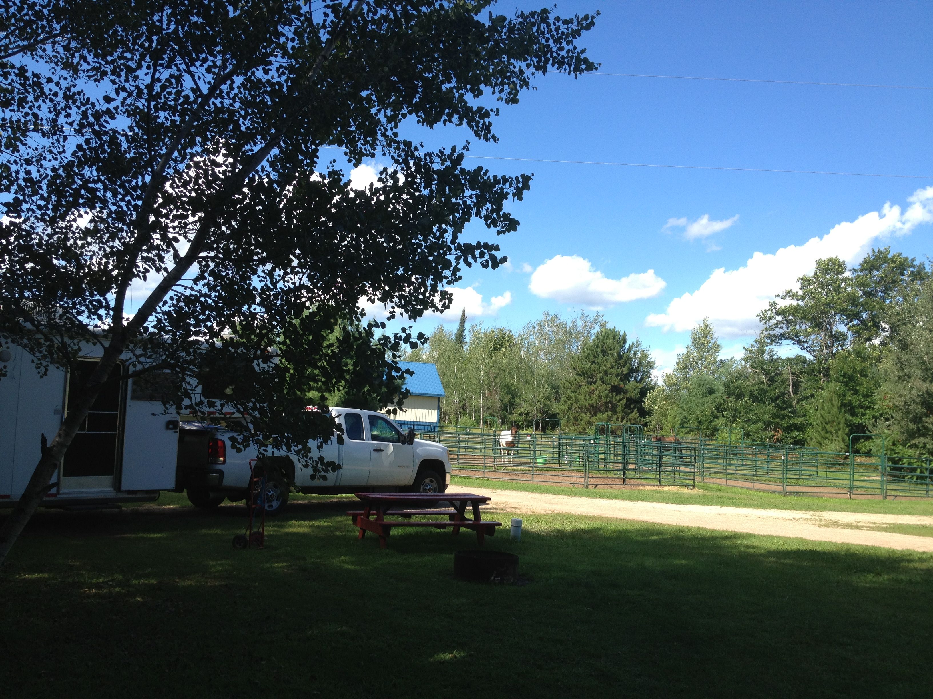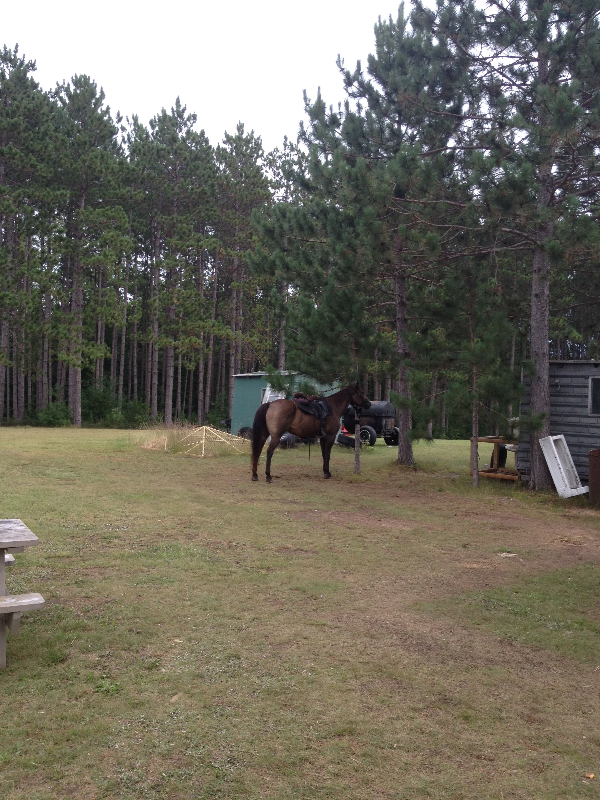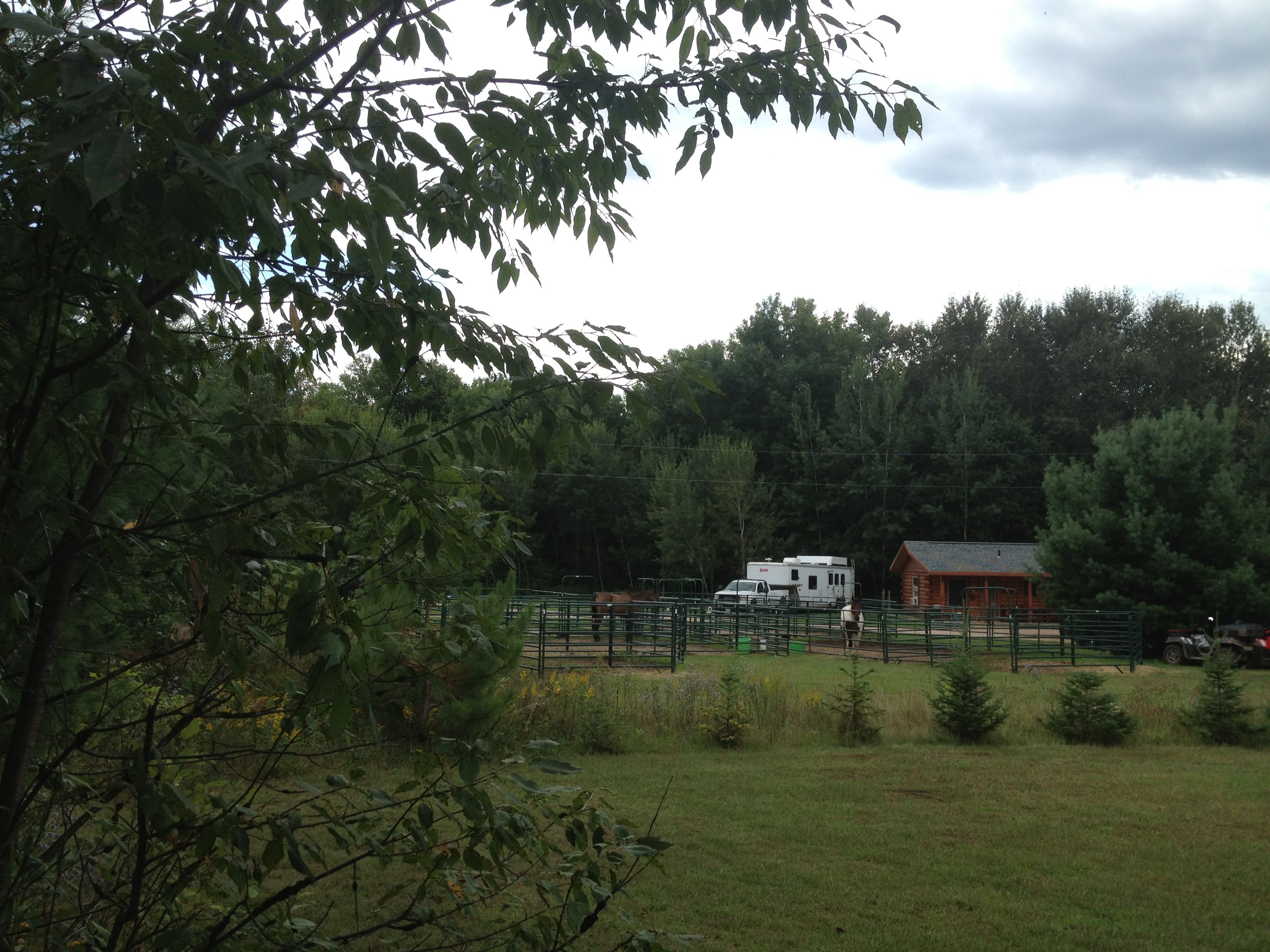 Wisconsin feels like home to me. We used to summer on Shawano lake with my grandparents when I was little. I remember it as a small lake, but it is 7 miles long to my surprise. The further north I drove, the more beautiful it got. This camp is near a lake with a lot of cottages around it. Everything is clean and well taken care of. The camp is immaculate. I have electric and water hook ups. There are beautiful log cabins to rent. The horses have nice sized sand paddocks. I took Tommy for a short walk along the rail bed trail. There are 2 other couples in my area. Neither are here with horses. One in a huge rv with 4 wheelers and kayaks and an old black lab named Duke, the others are in a cabin. There are 2 other campers in another area with horses and a large group with horses is expected in this weekend.