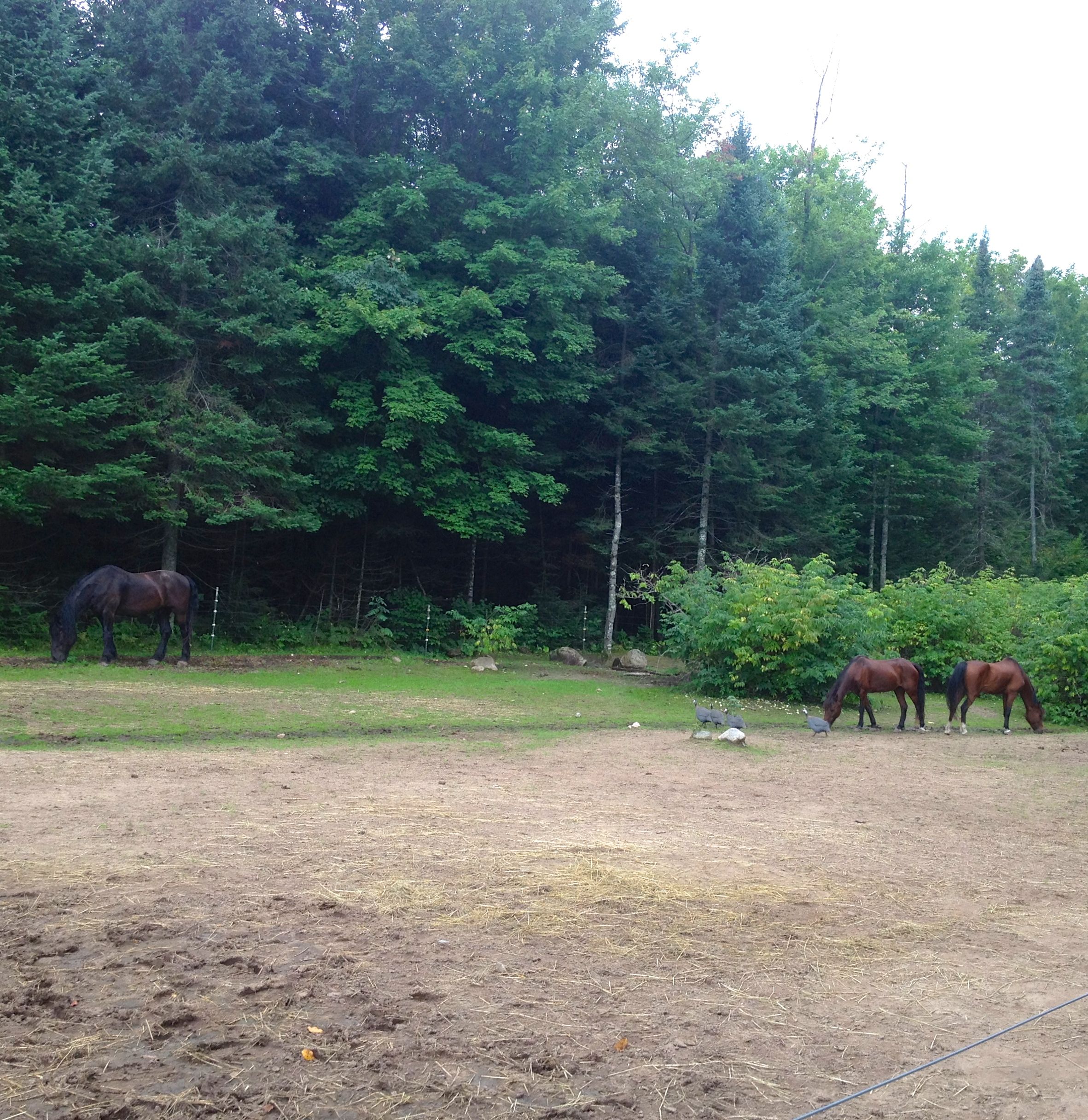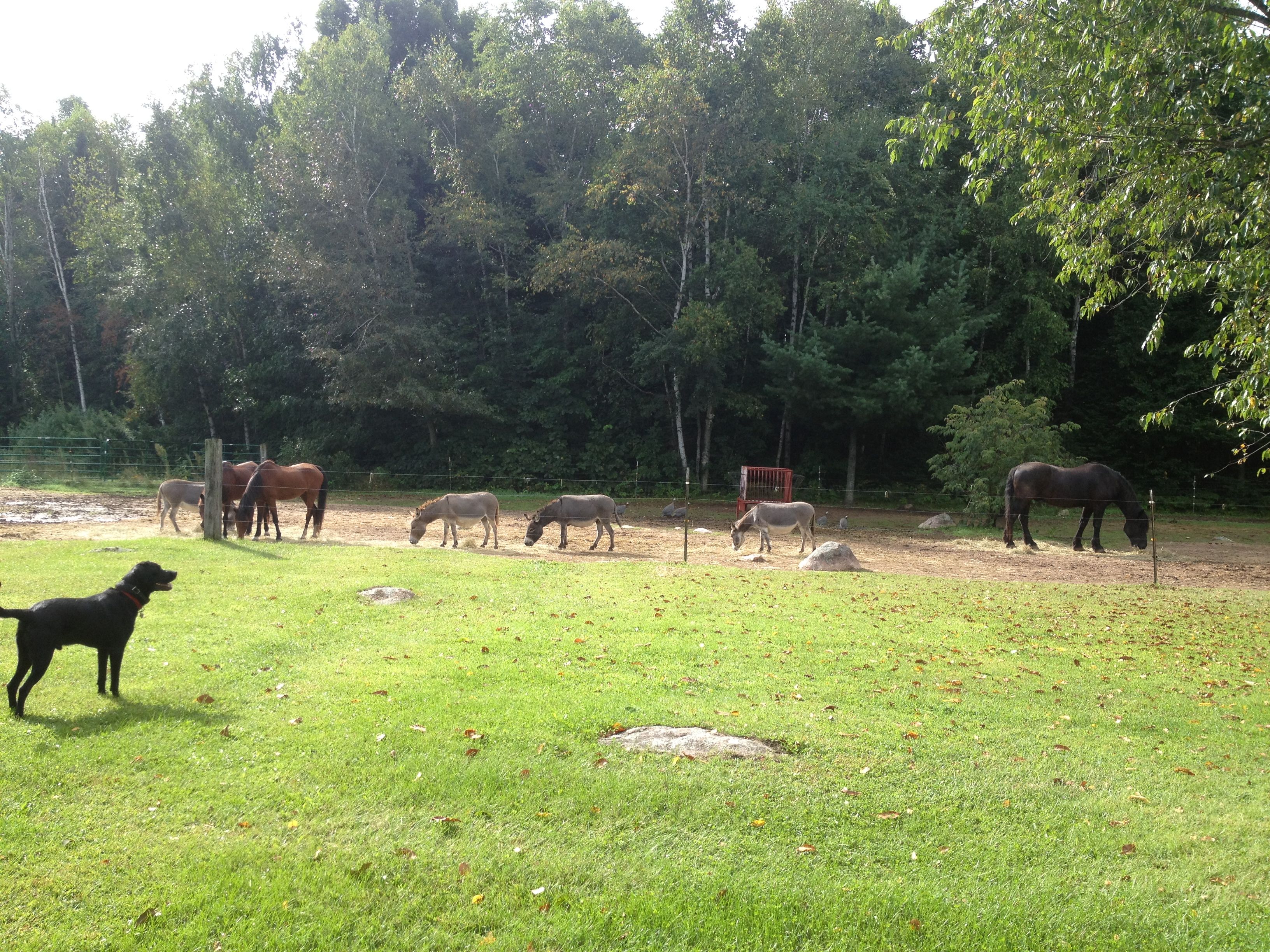 I stopped by the owner’s paddocks to take some pictures of their herd. There is one huge dark shire kind of horse they use for pulling a carriage and 2 tiny horses used for driving a cart. There are 4 donkeys and a bunch of cornish hens I think. All in the same paddock. Its a really cute combination.
