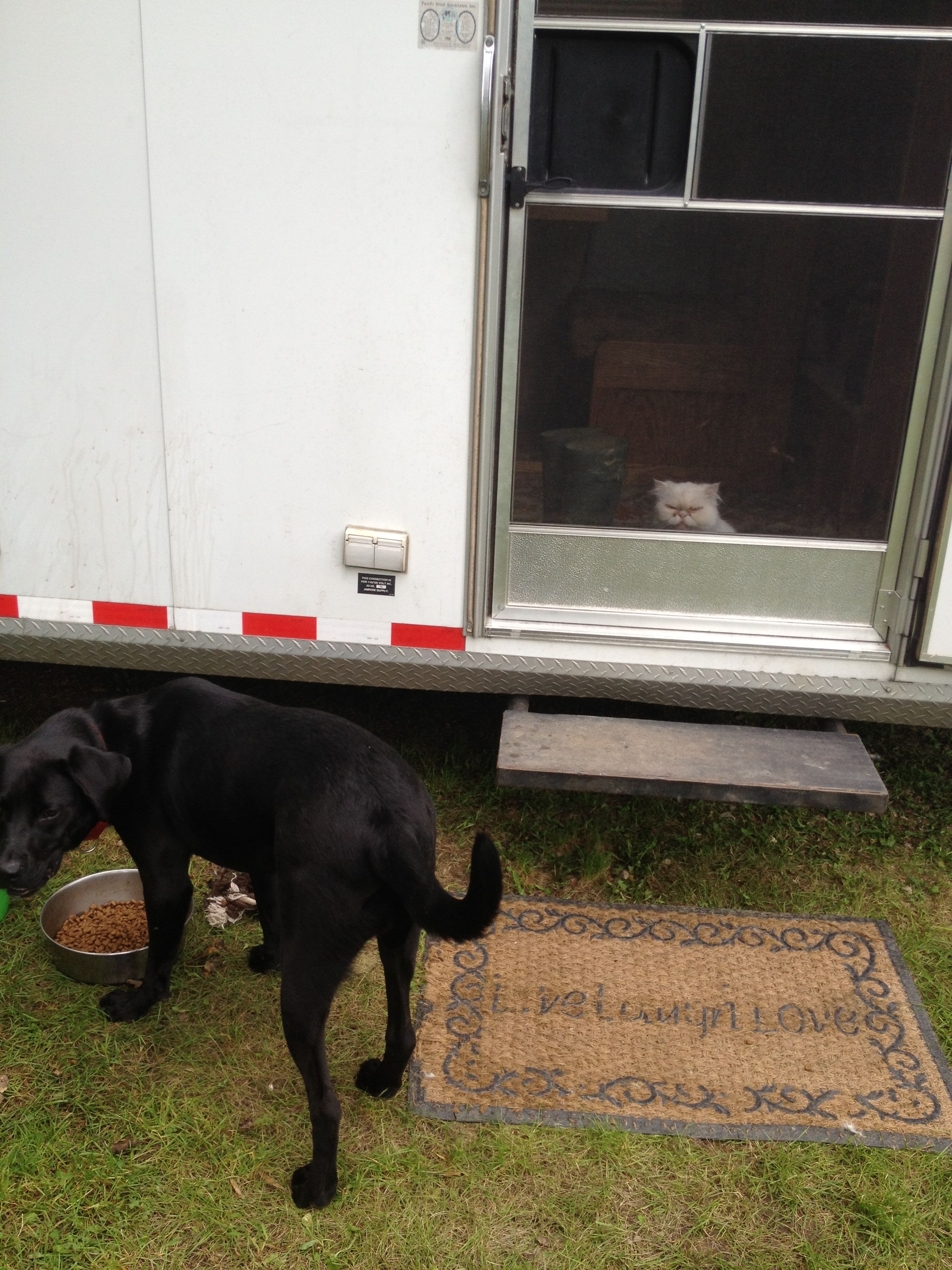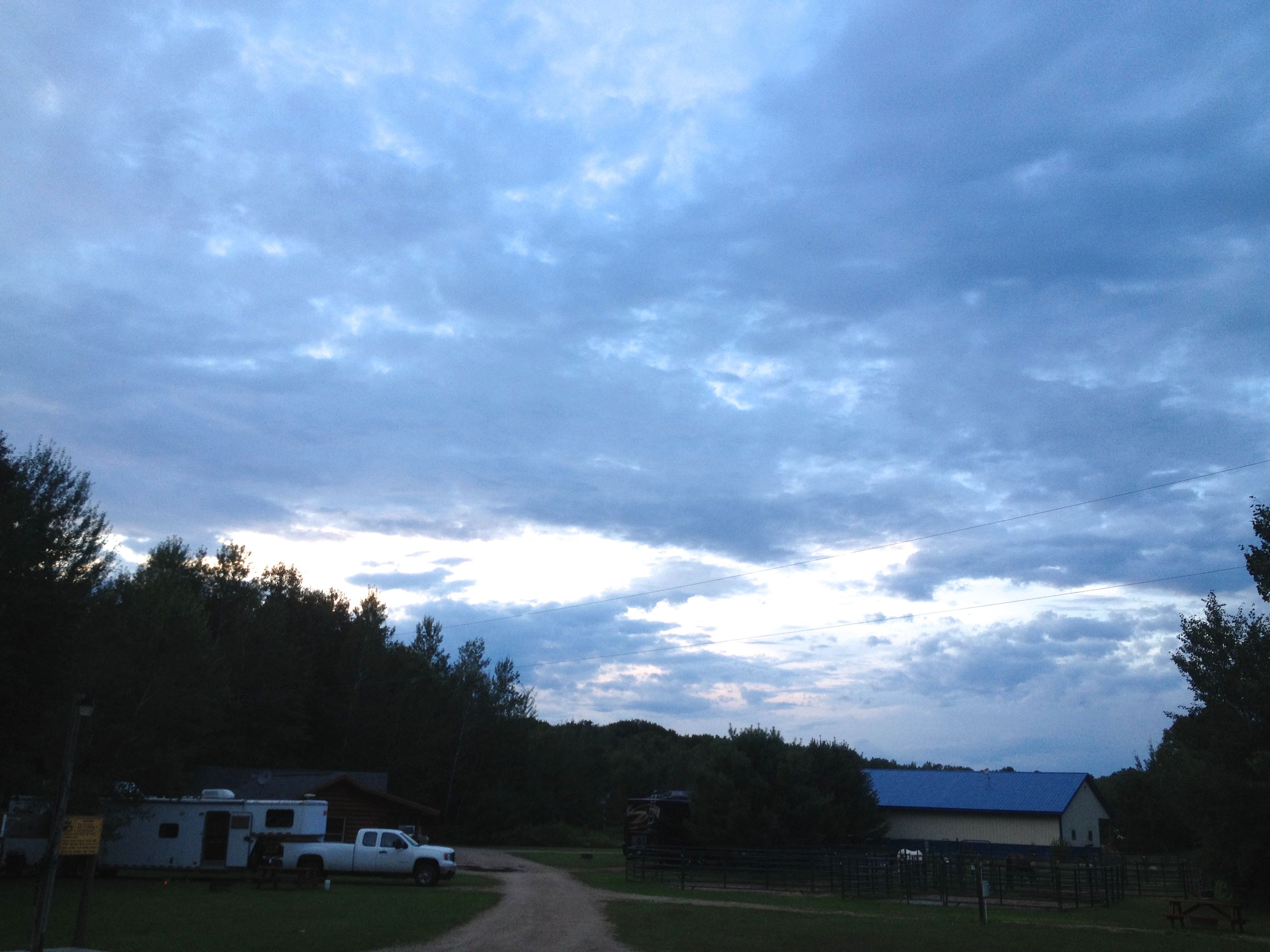 What a storm last night! Lightening, thunder and pouring rain. I have so much water in the trailer, it was leaking from the ceiling ac/heat vent and the fan that has the plastic cover duct taped over it. I pulled the heavy wet rugs out and hung them on the corrals to dry a little before I leave. It was a spectacular storm! Tommy stayed cuddled next to me all night, he usually does, and on my other side was Nalla. I pulled down the heavier shades on the windows by the bed so the flashes weren’t too bright. The sun has come up and it is a blue sky with white puffy clouds. I hope it stays that way for my drive today, I don’t like hauling in the rain. I forgot how midwestern storms are, they come on hard and fast but when they are over, its beautiful. Like a temper tantrum and then, oh its over and gone, no pouting about it. In CA during rainy season it will just rain and rain and rain for days on end. I remember my mom visiting one December and it rained every day of the month. But of course, the rest of the year it never rained and in recent years it hasn’t rained at all, they are in a very serious drought.