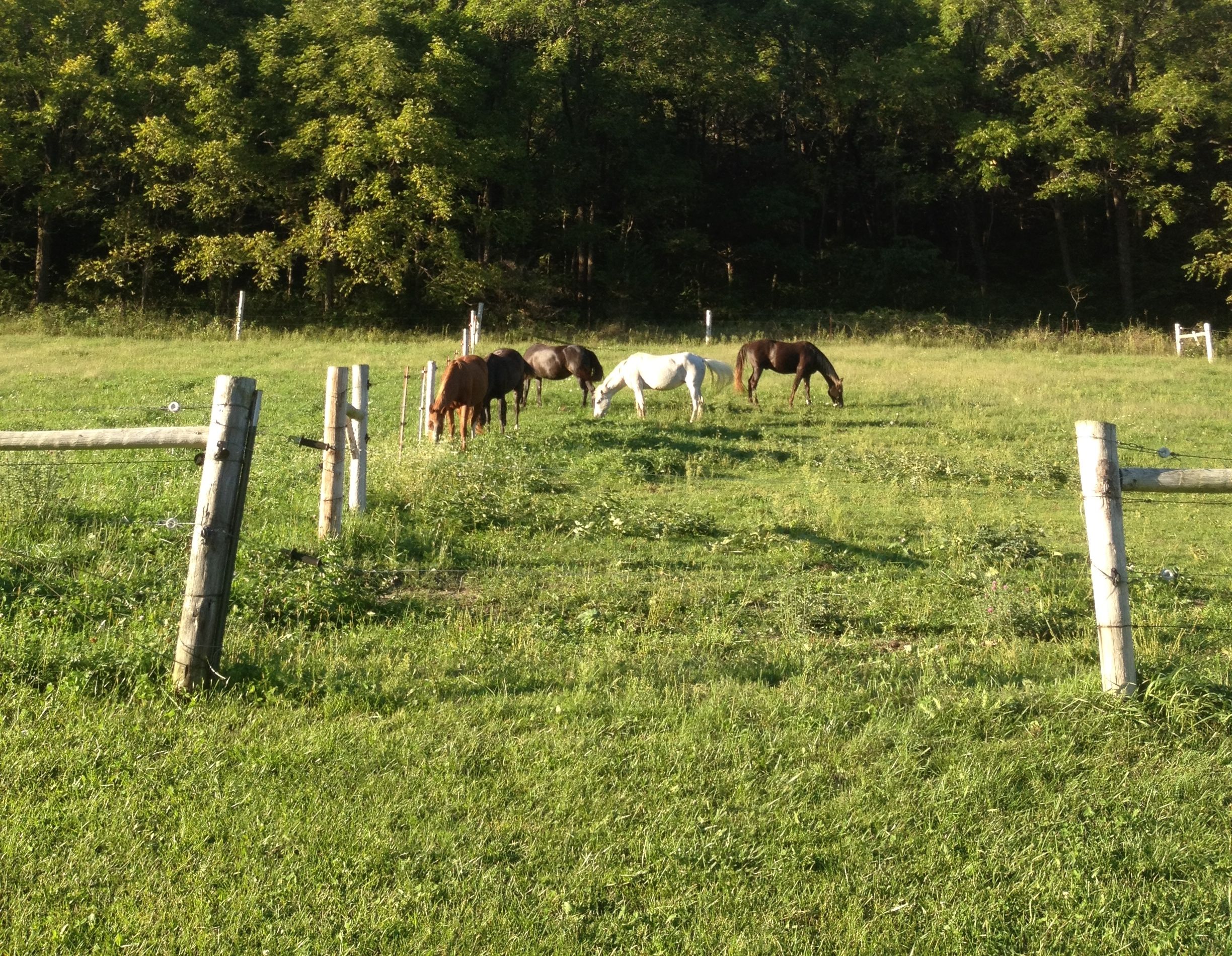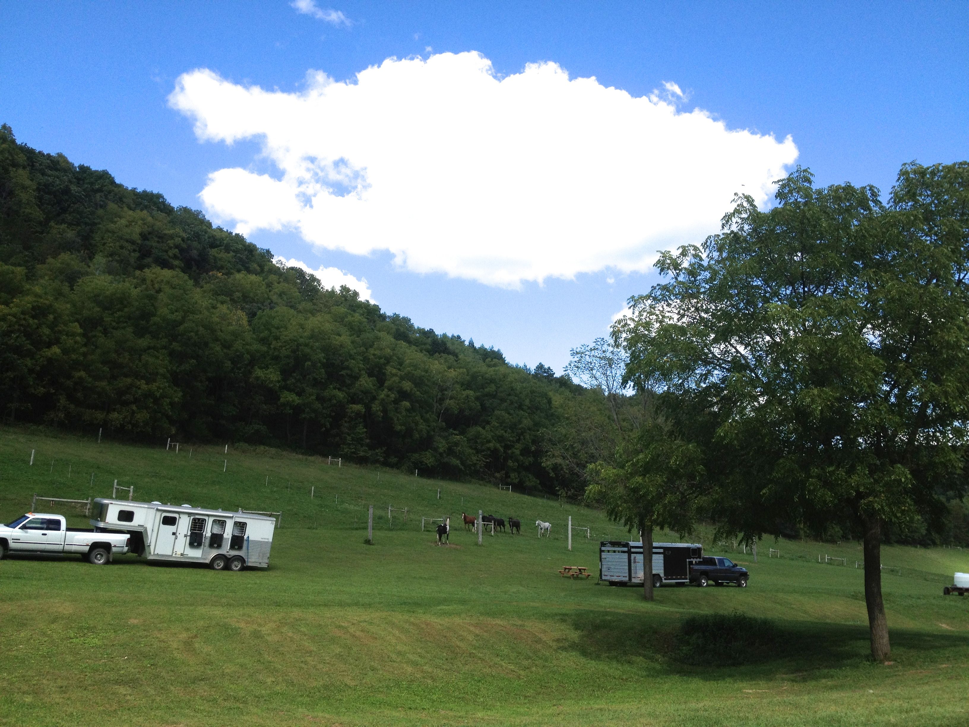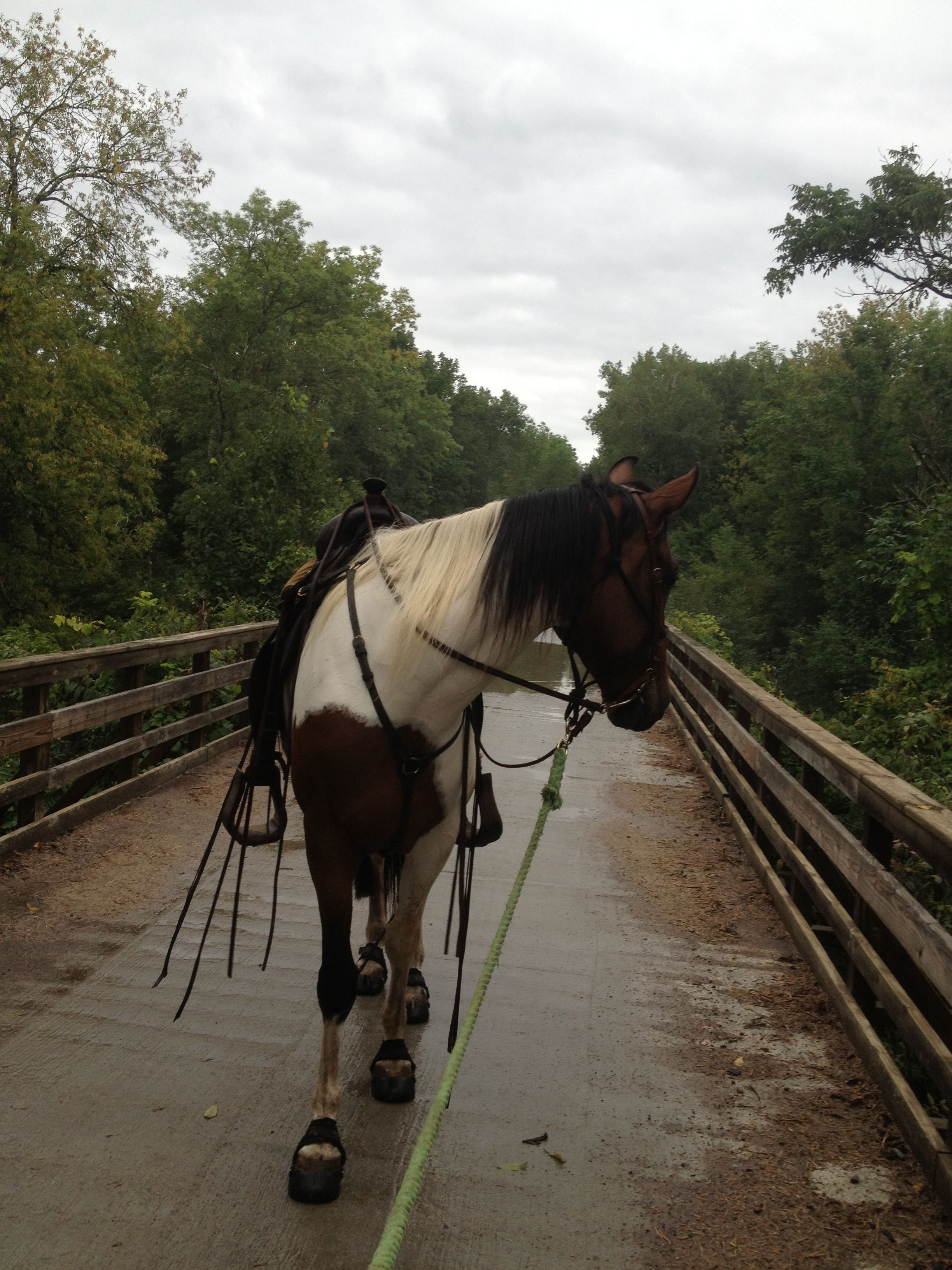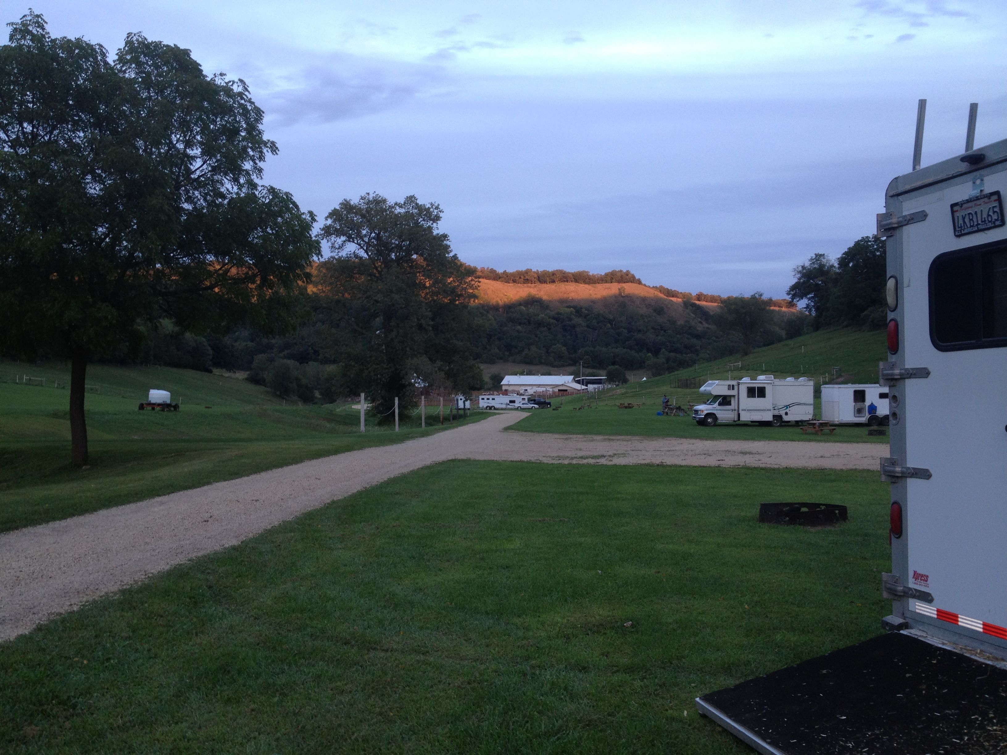 9/7/14 Outback Ranch, Houston, MN; state #39 (one of the nicest, and popular to locals campgrounds ever) I talked with the couple in the enormous/fancy rv before I pulled out of WI camp. He pulls a long trailer with it loaded with his truck, 2 atvs and 2 kayaks. This guy can drive! He is in the business of building scientific labs. They were really nice and asked for my blog address. In response to my answer of why I had taken on this trip he said “its amazing how little time it takes a schmuck to do a lot of damage”…well put I thought. (I am posting 2 pictures from my ride on WF my last day in WI now too, on the scary bridge and with the 2 horse statues and logging wagon. I must of missed them on my last post.) I had a big mess in the corrals to clean out, tons of wet hay. I let them graze a while till they wandered too far. I went up to the owner’s house to use her wi-fi to publish a post for WI (but I’m not sure if it actually did it or not), dumped the tanks and pulled out by 10:30. On the way to Minnesota I stopped at Walmart and stocked up on groceries. I got into camp around 4 or 5. The route was half interstate and the rest was beautiful state highways which Wisconsin keeps in great repair. I crossed into Minnesota and my exit ramp was closed, ugh…it re routed me nicely tho. I opted out of the “sharp turn” directions off the camp’s website directions and had no trouble on the “cut across road” which was dirt. There was another long dirt road leading to camp and the entire MN area coming in is gorgeous. Hills, farms, and the weather was lovely… Camp is set in a little valley and the side walls of the valley are the grass pastures for the campsites. There are 2 barns, a big dirt arena. There are a lot of sites, some are electric, some not. A few cabins and different areas of camp sites, its a huge ranch and spread out. There was an old black lab wandering around and adorable little boy shuffling around in new cowboy boots that were too big for him (I was told he refuses to take them off). A guy, I think the owner? Jake? and another young boy, helped me fill my water tank since there is not people water at the sites. He crawled under the trailer to see if he could fix my clogged air hose issue. I have to keep pulling the hose out to “burp” the tank. Some time ago I discovered a twig in my air hose. I can’t get it cleared and have just accepted doing this but he said if the twig gets loose in the tank and gets into the water pump it will break it. He said the hose is all under metal and maybe I can access it from inside the trailer. Ugh… The horse water is in big tanks on flatbed trailers stationed around camp. The hose is like a fire hose and when you open the valve it comes out with tremendous force. But it fits nicely over the 5 gallon tank that Jack gave me back in ID and it fills it up in less than a minute. I use the hand truck to get it back and forth to my horses’ pasture. I have been very friendly at this camp, not that I’m not friendly, but it is coming more easily now, like I used to be a long time ago, actually almost “outgoing”. I have met everyone here I think, even the group at the remote cabin when I was out riding Dreamy. Last night, after Liza got here, we joined a campfire of 2 couples that are here together and had invited us to their fire. We had a hoot, I laughed so hard at times my eyes were watering. They had a hollow log that they had been saving and put it in the fire, then fed old christmas lights to it, the copper wire making green and blue flames. It was really cool. And incredibly hot. Liza kept asking if she should move away as if it might explode. I got to sit in one of their super comfy bungey cord lounge chairs. I really wish I had one of these chairs, but I don’t have room for it really. We talked about e cigarettes (and how I had dropped mine in the porta potty here and retrieved it and then angsted about how to sanitize it and my hand), parents dying, diabetes (one of the couples has a 24 year old diabetic son who is a tri-athlete and has gone thru many of the same fears and failures I have), shorts in the trailer (one woman got a super shock from plugging in her blow dryer while soaking wet outside and they had a bad ground in the plug), rowdy campers and rider stories (one woman works for the DNR and related a wild story and how she shut it down with one phone call). Its nice to know that other experienced campers have the same troubles I do and that we can all laugh about it now. It feels so good to laugh. I had a great ride on Dreamy yesterday, into the state park trails. I spent the first half hour feeling grateful and praying. I prayed for God to use me to shine his glory, peace and joy onto others. Especially for my sister who was on her way here. I held my hands to the sky and arched my back and looked up. Dreamy is used to this and she just keeps going. I have gotten so I can do this with my upper body and still guide her with just my seat and legs. Then I thanked her for being such a good girl and letting me pray and we picked up the pace. She was acting like it was too hard for her on the way out, blowing hard at times. Lots of steep hills up and down. I was feeling bad about it and after an hour and a half or so I stopped at a small empty campground to let her rest & graze. There was no water there and I thought she was thirsty. When I got back on her and headed home she took off like a rocket down hill. She got me again! Why do I fall for this. Its not faking lame, its buddy sour super bad. But I didn’t get mad about it, its natural for her to want her herd. Anyway it was a very fun ride back and she showed me again how capable & fit she really is! Natural impulsion is so much fun on her. God I love this mare. The trail map they gave me is very hard to read so I downloaded it off their website and messed with it in photoshop and printed out one I could read. The trails are very well marked w