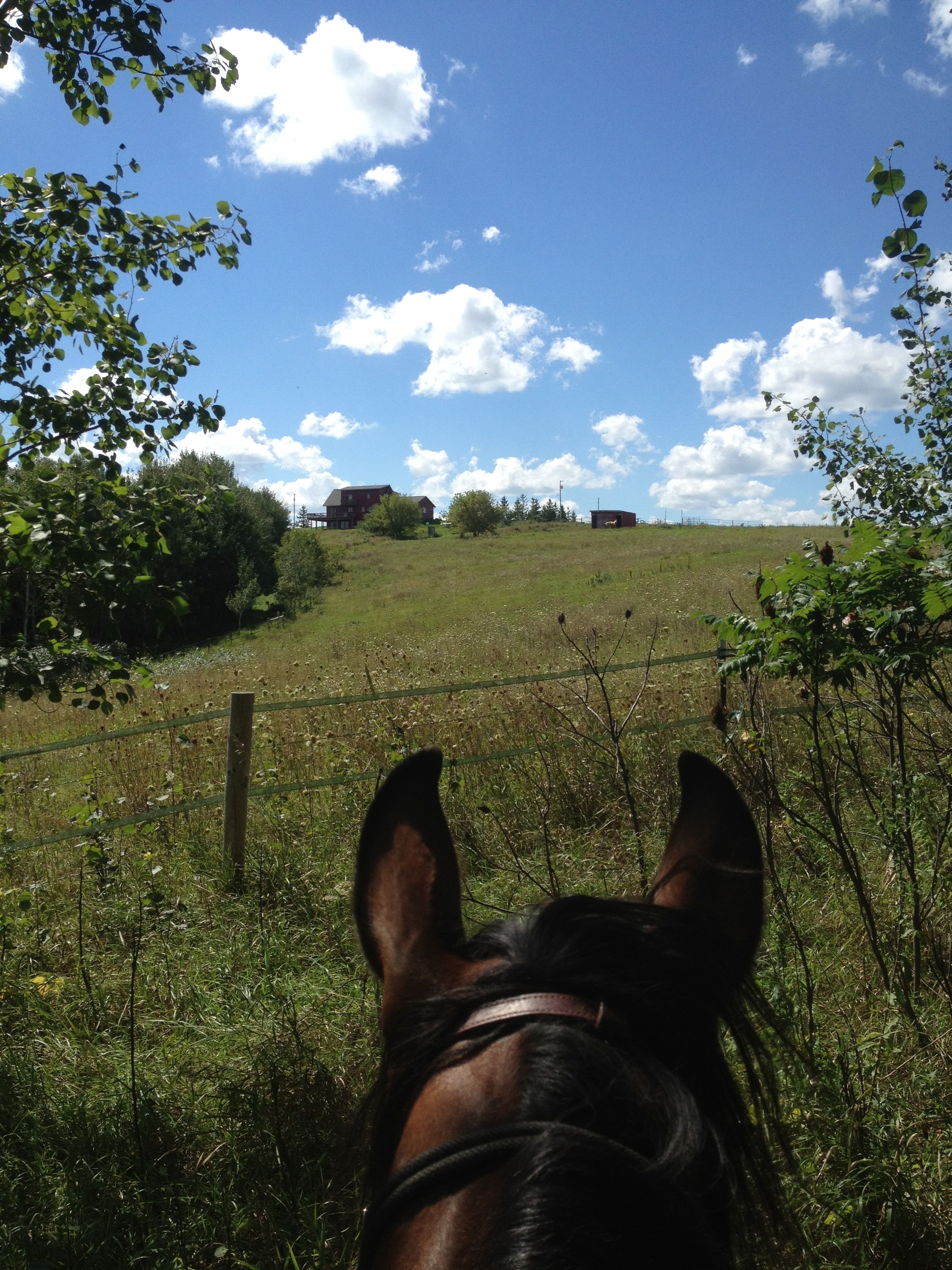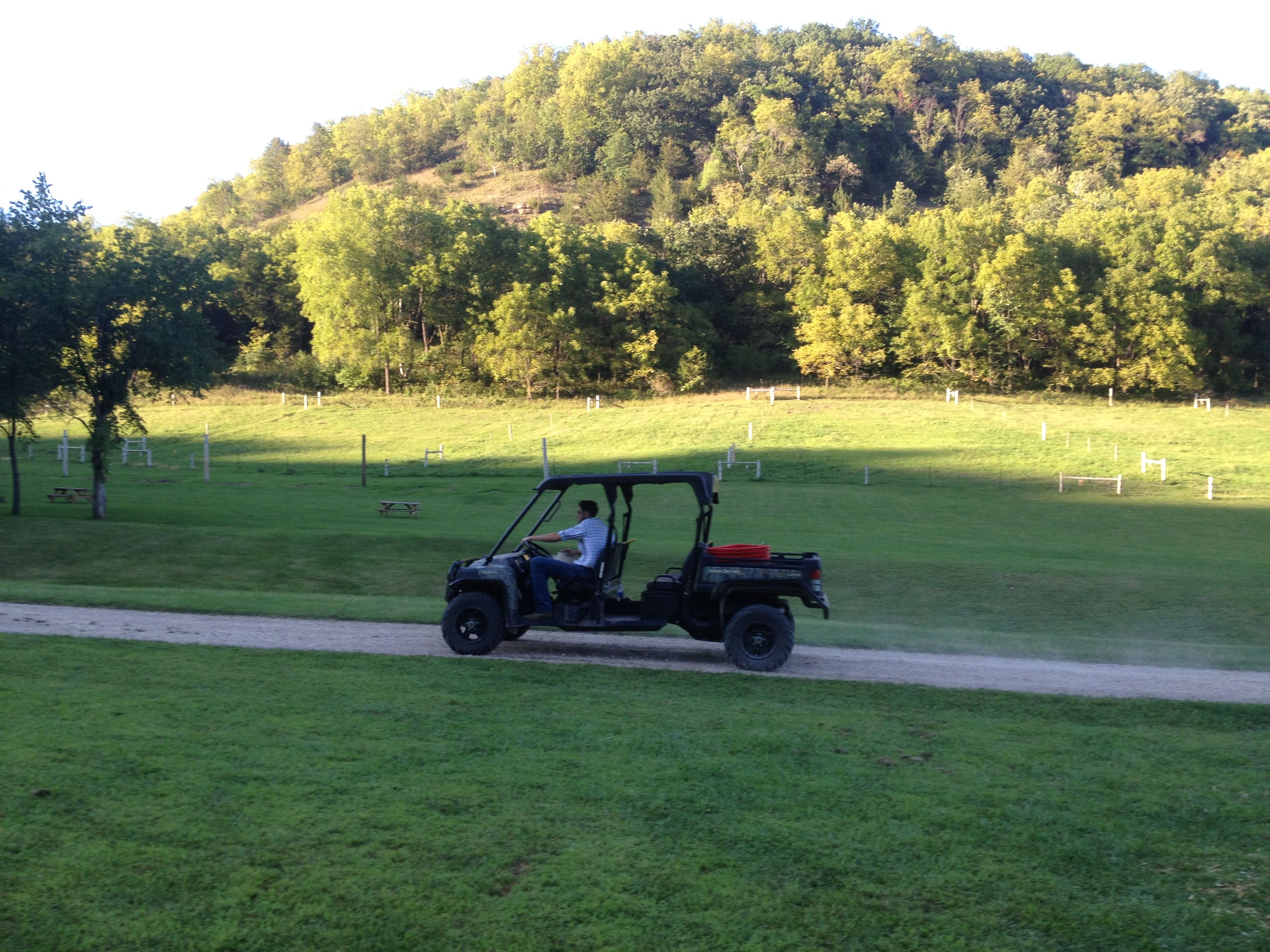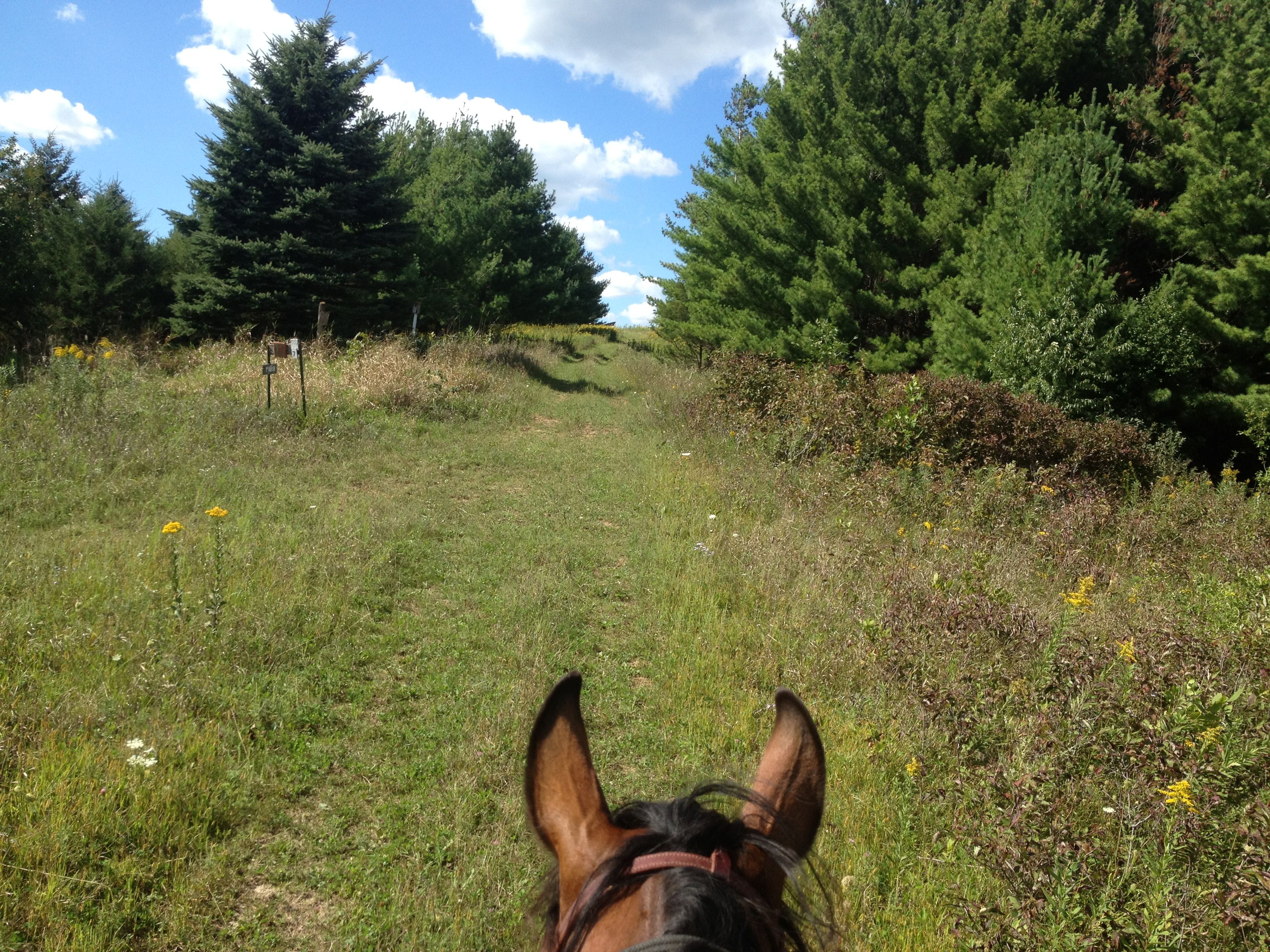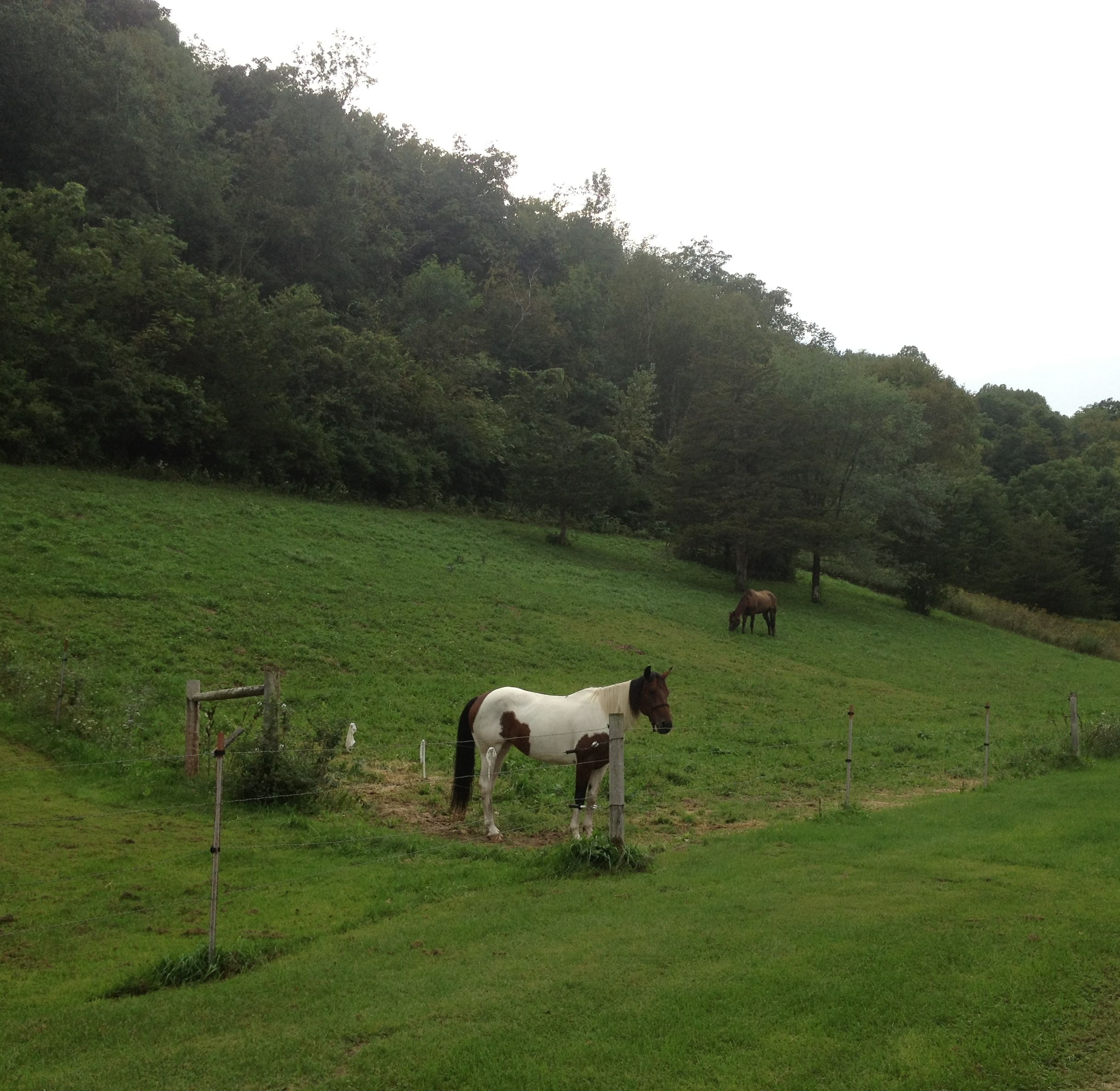 9/7/14 Outback Ranch, Houston, MN; state #39 (one of the nicest, and popular to locals campgrounds ever) I talked with the couple in the enormous/fancy rv before I pulled out of WI camp. He pulls a long trailer with it loaded with his truck, 2 atvs and 2 kayaks. This guy can drive! He is in the business of building scientific labs. They were really nice and asked for my blog address. In response to my answer of why I had taken on this trip he said “its amazing how little time it takes a schmuck to do a lot of damage”…well put I thought. (I am posting 2 pictures from my ride on WF my last day in WI now too, on the scary bridge and with the 2 horse statues and logging wagon. I must of missed them on my last post.) I had a big mess in the corrals to clean out, tons of wet hay. I let them graze a while till they wandered too far. I went up to the owner’s house to use her wi-fi to publish a post for WI (but I’m not sure if it actually did it or not), dumped the tanks and pulled out by 10:30. On the way to Minnesota I stopped at Walmart and stocked up on groceries. I got into camp around 4 or 5. The route was half interstate and the rest was beautiful state highways which Wisconsin keeps in great repair. I crossed into Minnesota and my exit ramp was closed, ugh…it re routed me nicely tho. I opted out of the “sharp turn” directions off the camp’s website directions and had no trouble on the “cut across road” which was dirt. There was another long dirt road leading to camp and the entire MN area coming in is gorgeous. Hills, farms, and the weather was lovely… Camp is set in a little valley and the side walls of the valley are the grass pastures for the campsites. There are 2 barns, a big dirt arena. There are a lot of sites, some are electric, some not. A few cabins and different areas of camp sites, its a huge ranch and spread out. There was an old black lab wandering around and adorable little boy shuffling around in new cowboy boots that were too big for him (I was told he refuses to take them off). A guy, I think the owner? Jake? and another young boy, helped me fill my water tank since there is not people water at the sites. He crawled under the trailer to see if he could fix my clogged air hose issue. I have to keep pulling the hose out to “burp” the tank. Some time ago I discovered a twig in my air hose. I can’t get it cleared and have just accepted doing this but he said if the twig gets loose in the tank and gets into the water pump it will break it. He said the hose is all under metal and maybe I can access it from inside the trailer. Ugh… The horse water is in big tanks on flatbed trailers stationed around camp. The hose is like a fire hose and when you open the valve it comes out with tremendous force. But it fits nicely over the 5 gallon tank that Jack gave me back in ID and it fills it up in less than a minute. I use the hand truck to get it back and forth to my horses’ pasture. I have been very friendly at this camp, not that I’m not friendly, but it is coming more easily now, like I used to be a long time ago, actually almost “outgoing”. I have met everyone here I think, even the group at the remote cabin when I was out riding Dreamy. Last night, after Liza got here, we joined a campfire of 2 couples that are here together and had invited us to their fire. We had a hoot, I laughed so hard at times my eyes were watering. They had a hollow log that they had been saving and put it in the fire, then fed old christmas lights to it, the copper wire making green and blue flames. It was really cool. And incredibly hot. Liza kept asking if she should move away as if it might explode. I got to sit in one of their super comfy bungey cord lounge chairs. I really wish I had one of these chairs, but I don’t have room for it really. We talked about e cigarettes (and how I had dropped mine in the porta potty here and retrieved it and then angsted about how to sanitize it and my hand), parents dying, diabetes (one of the couples has a 24 year old diabetic son who is a tri-athlete and has gone thru many of the same fears and failures I have), shorts in the trailer (one woman got a super shock from plugging in her blow dryer while soaking wet outside and they had a bad ground in the plug), rowdy campers and rider stories (one woman works for the DNR and related a wild story and how she shut it down with one phone call). Its nice to know that other experienced campers have the same troubles I do and that we can all laugh about it now. It feels so good to laugh. I had a great ride on Dreamy yesterday, into the state park trails. I spent the first half hour feeling grateful and praying. I prayed for God to use me to shine his glory, peace and joy onto others. Especially for my sister who was on her way here. I held my hands to the sky and arched my back and looked up. Dreamy is used to this and she just keeps going. I have gotten so I can do this with my upper body and still guide her with just my seat and legs. Then I thanked her for being such a good girl and letting me pray and we picked up the pace. She was acting like it was too hard for her on the way out, blowing hard at times. Lots of steep hills up and down. I was feeling bad about it and after an hour and a half or so I stopped at a small empty campground to let her rest & graze. There was no water there and I thought she was thirsty. When I got back on her and headed home she took off like a rocket down hill. She got me again! Why do I fall for this. Its not faking lame, its buddy sour super bad. But I didn’t get mad about it, its natural for her to want her herd. Anyway it was a very fun ride back and she showed me again how capable & fit she really is! Natural impulsion is so much fun on her. God I love this mare. The trail map they gave me is very hard to read so I downloaded it off their website and messed with it in photoshop and printed out one I could read. The trails are very well marked w