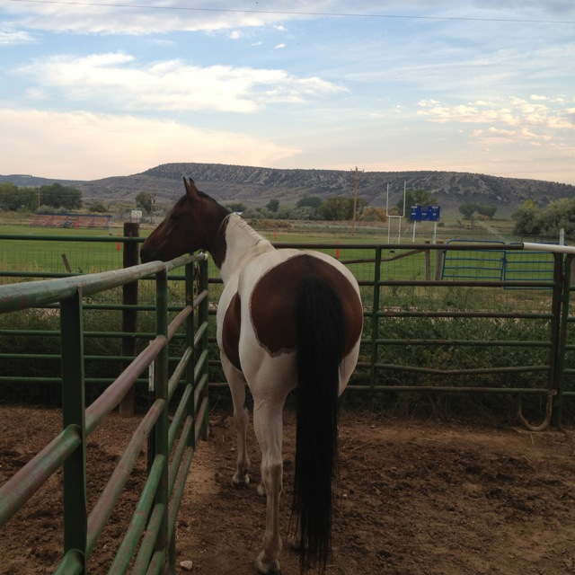 The owner’s here are very friendly as I had heard. They offered up riding with me, using a stock trailer to go somewhere else to ride. The mares have nice sized dirt pens next to each other. There is a shower/bath house that I haven’t investigated yet, and we have full hook up altho I just am using the electric now. There is only one other horse trailer here, but a lot of rvs. The highway 16 that took us thru the mountain pass is the same road the camp is on so there is the noise of vehicles passing. That and a strange water noise that turned out to be some kind of water treatment area on the other side of the football field next to us.