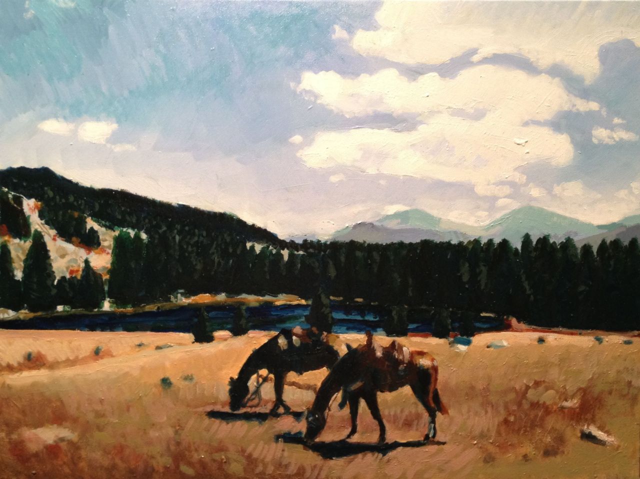 I spent the rest of the day looking for the rope and halter I had left hanging on the stock trailer before we left here (I found the rope, not the halter but I have an extra one), buying and loading weed free hay for Montana’s camp, starting the SD painting (but not getting much done), chatting with other campers (especially the young Canadian couple whom I adore), and going thru my photos from my rides (they don’t do the scenery justice, but I love looking at them and remembering the rides). I was having so much fun here I forgot to book my overnight for tomorrow (major slip up, I must be getting relaxed? A kind of foreign thing for me, lol). And I forgot to get my health certificates done again (they expire tomorrow, ugh). So we may not pull out tomorrow if I don’t get any return calls in the am about this stuff. Oh well…(I am definitely getting relaxed).