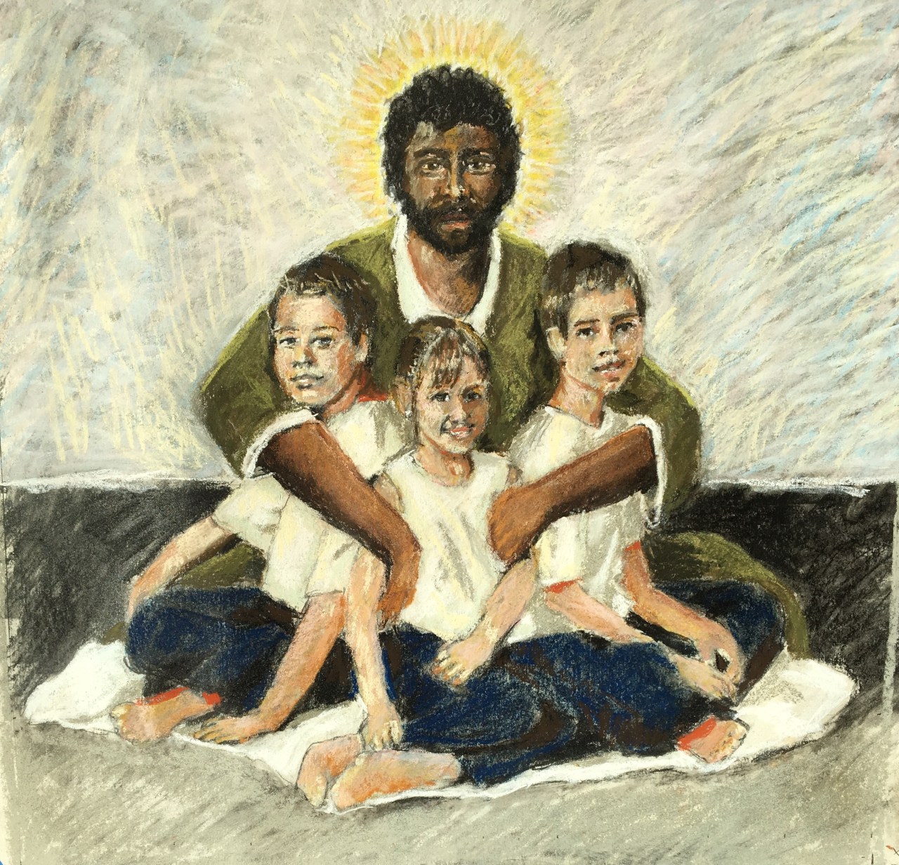 Working on my children’s tender young faces and bodies, reminded me of how dear they are to me and my current frustrations melted away. As I worked on Jesus, I resisted making him too handsome or too white. I redid His halo many times, halo’s are tough. Does anyone really have a halo or is that something artists have made up?