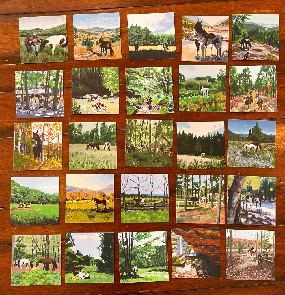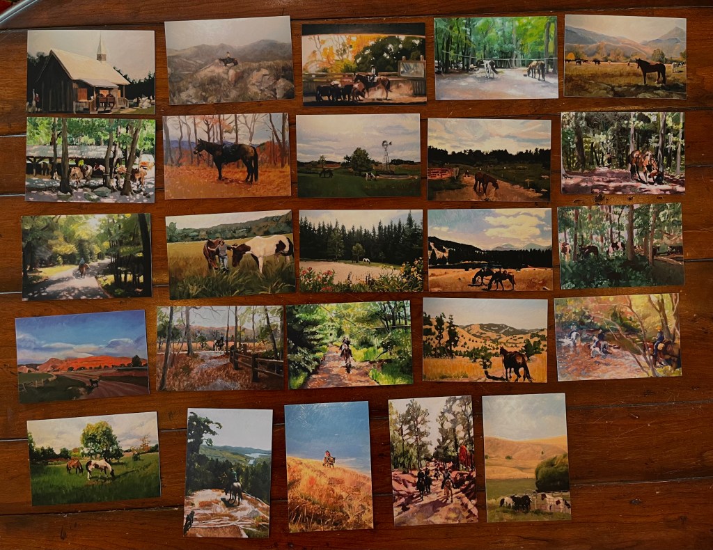 Instead of an expensive coffee table book of the paintings as some have asked for, I now have sets of 25 cards available for $25 per set, plus shipping.